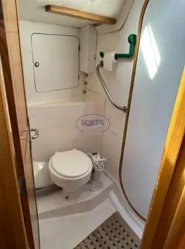 Forward cabin with V-berth double and heads compartment (toilet/handbasin/shower).
