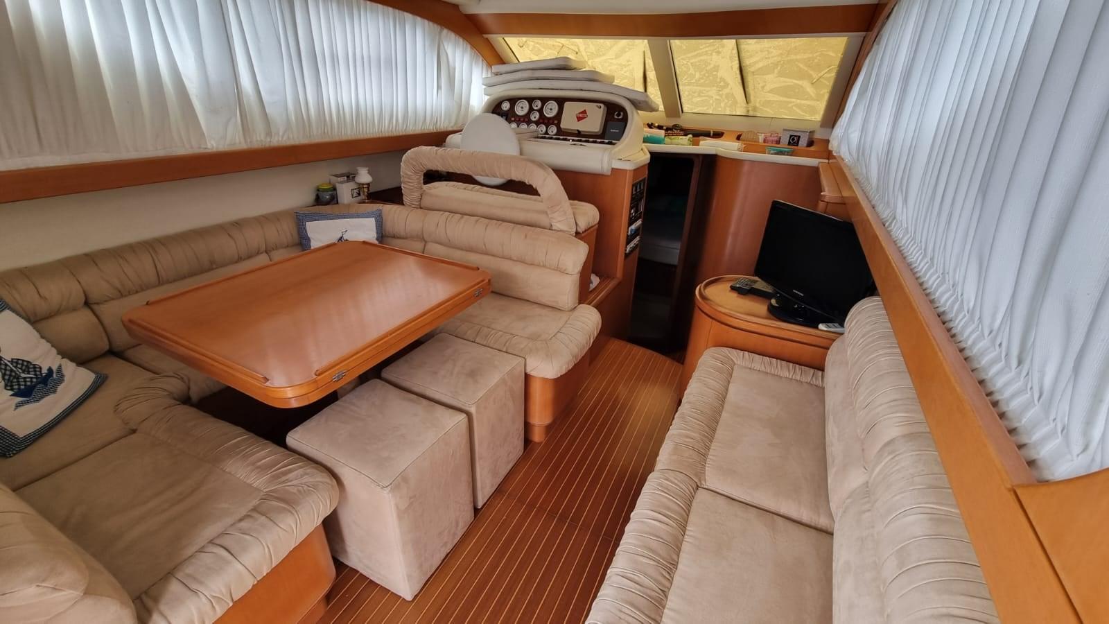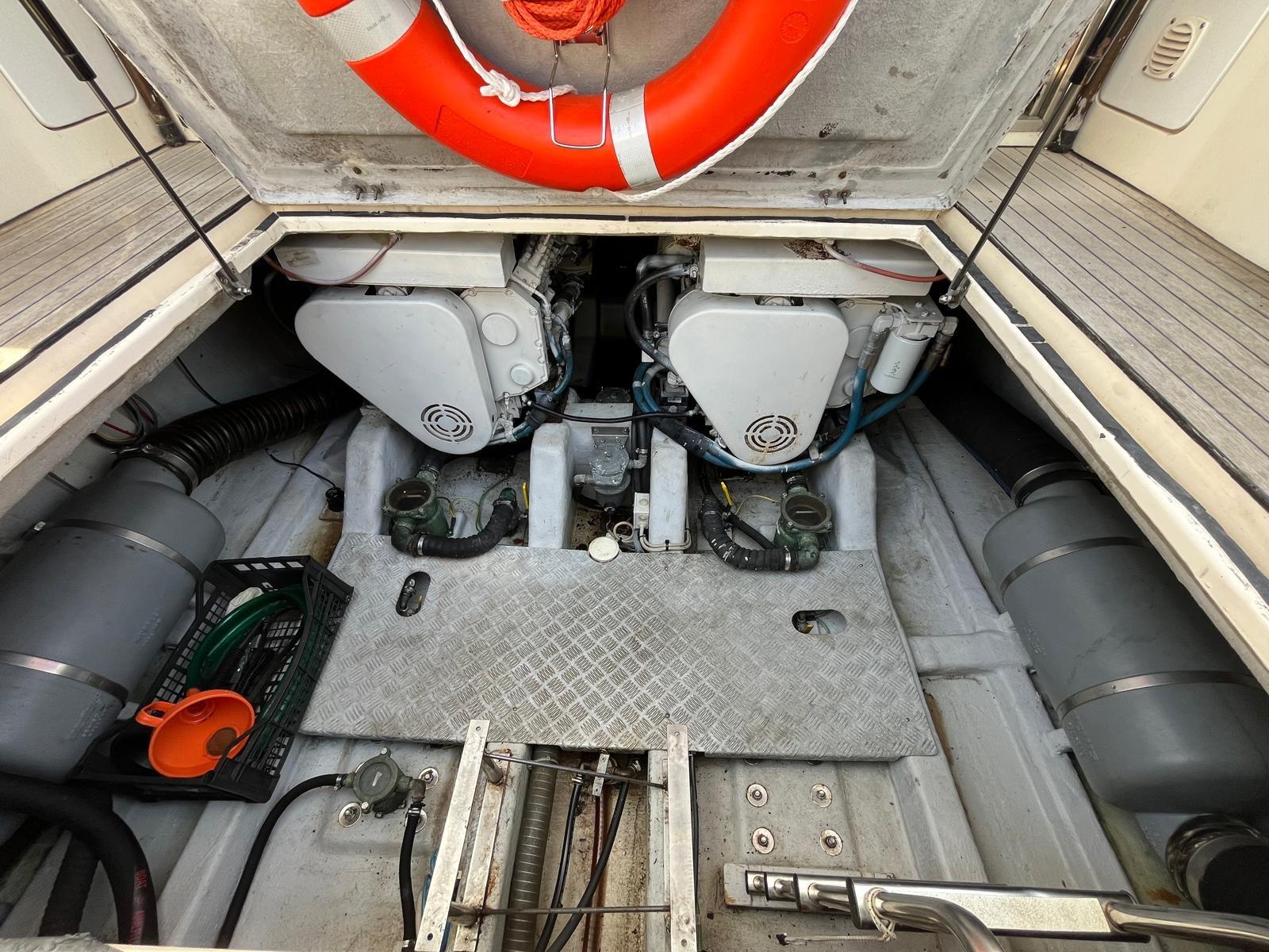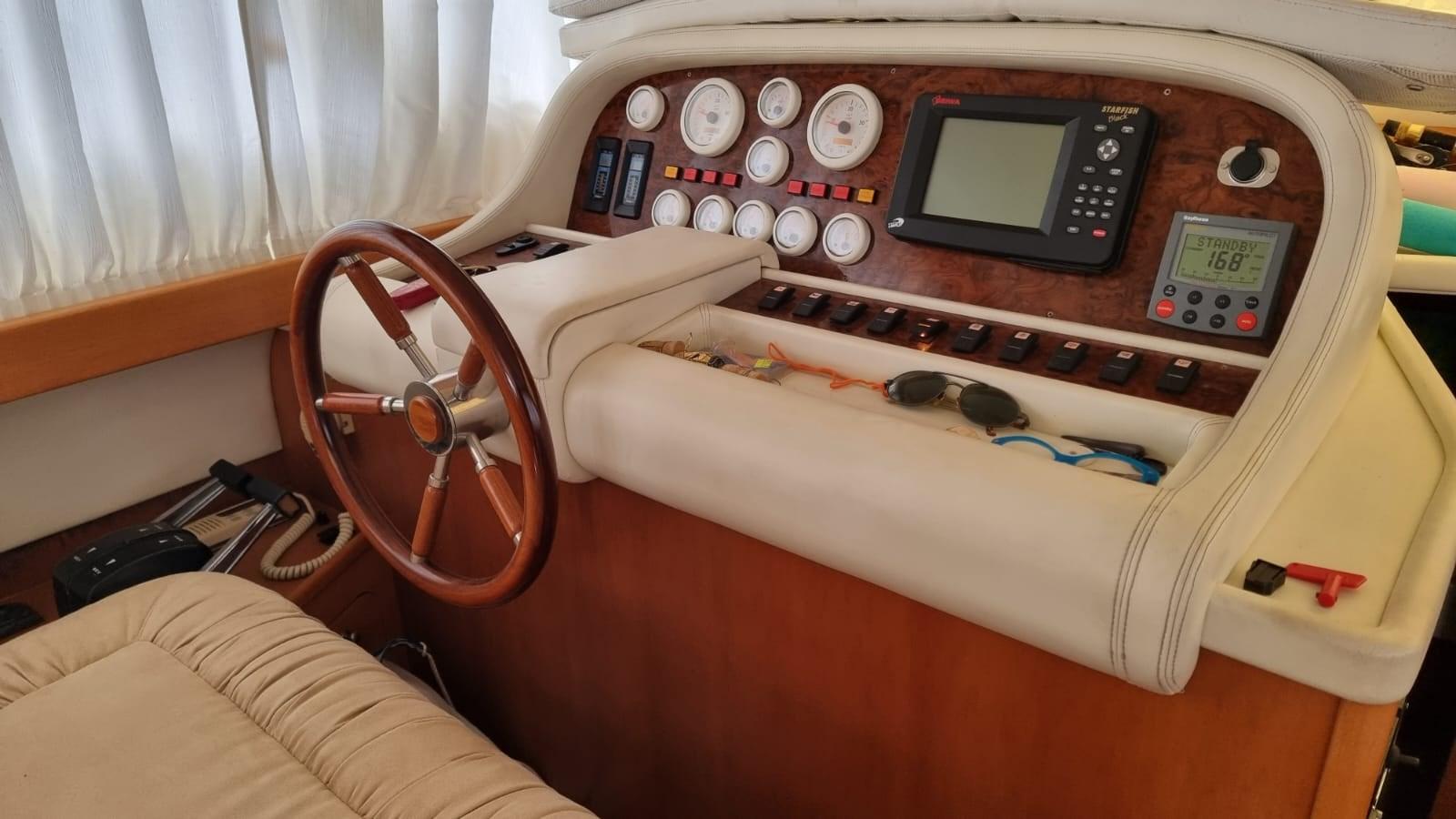 Engine Alarm, Bilge Alarm, Water pressure pump, 4 Batteries (2 servizi e 2 motori), Teak Side Decks, Battery charger (Nuovo 2024), Deck Shower, Twin Steering, Directional Spotlight, Hydraulic Flaps (N°2), Fire Extinguishing System, Flaps Indicators, Gangway (Idraulica Fontanel), Platform, Automatic Bilge Pump, Electric Bilge Pump (3 pompe), Manual Bilge Pump, Entry door, Teak Cockpit, Shorepower connector, Voltage Rectifier, Rollbar, Electric Windlass, swimming ladder, Living Room Foldable Table, Horn.