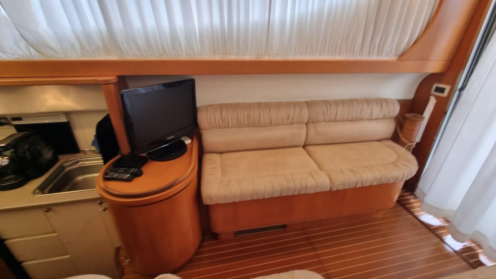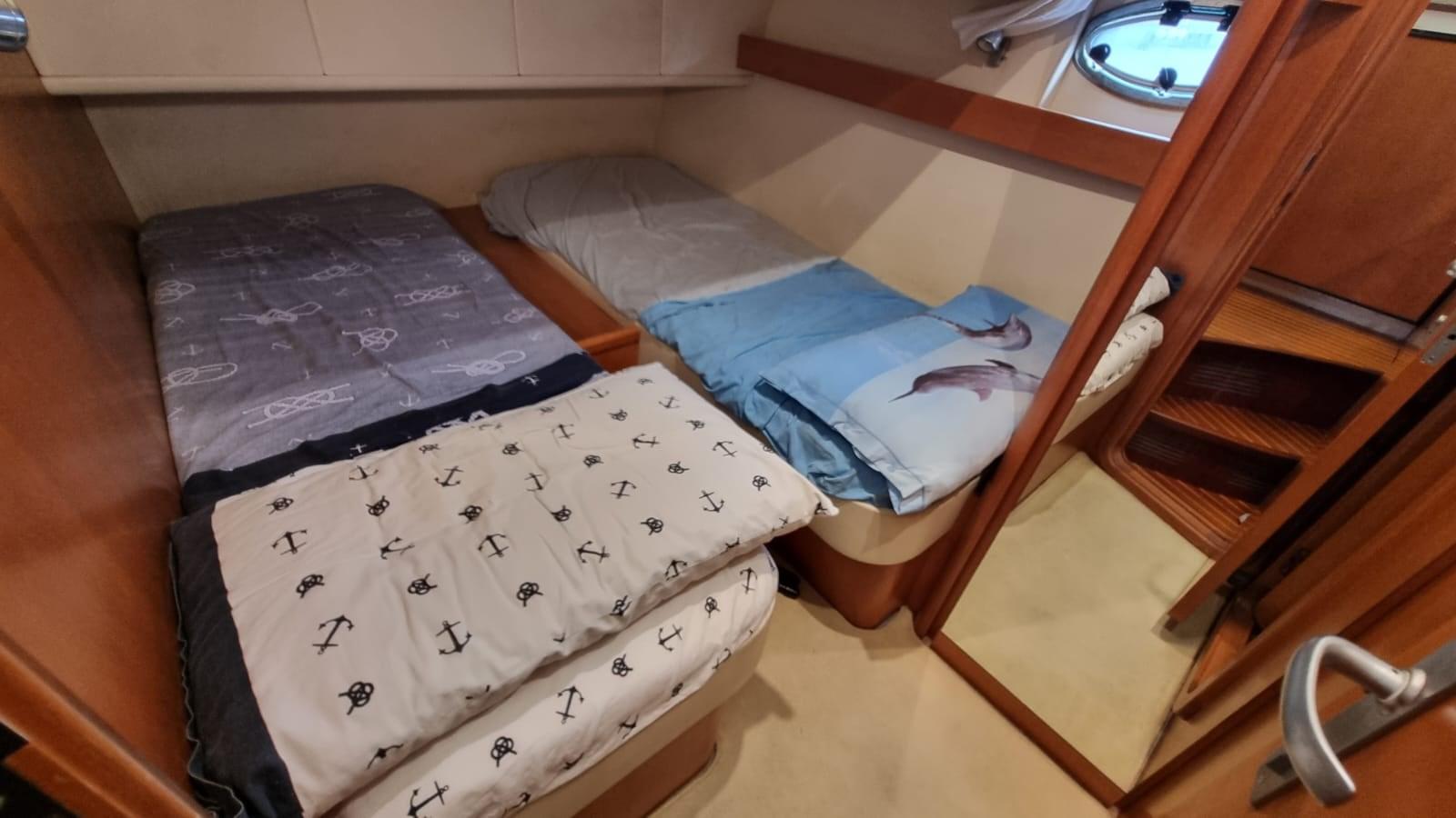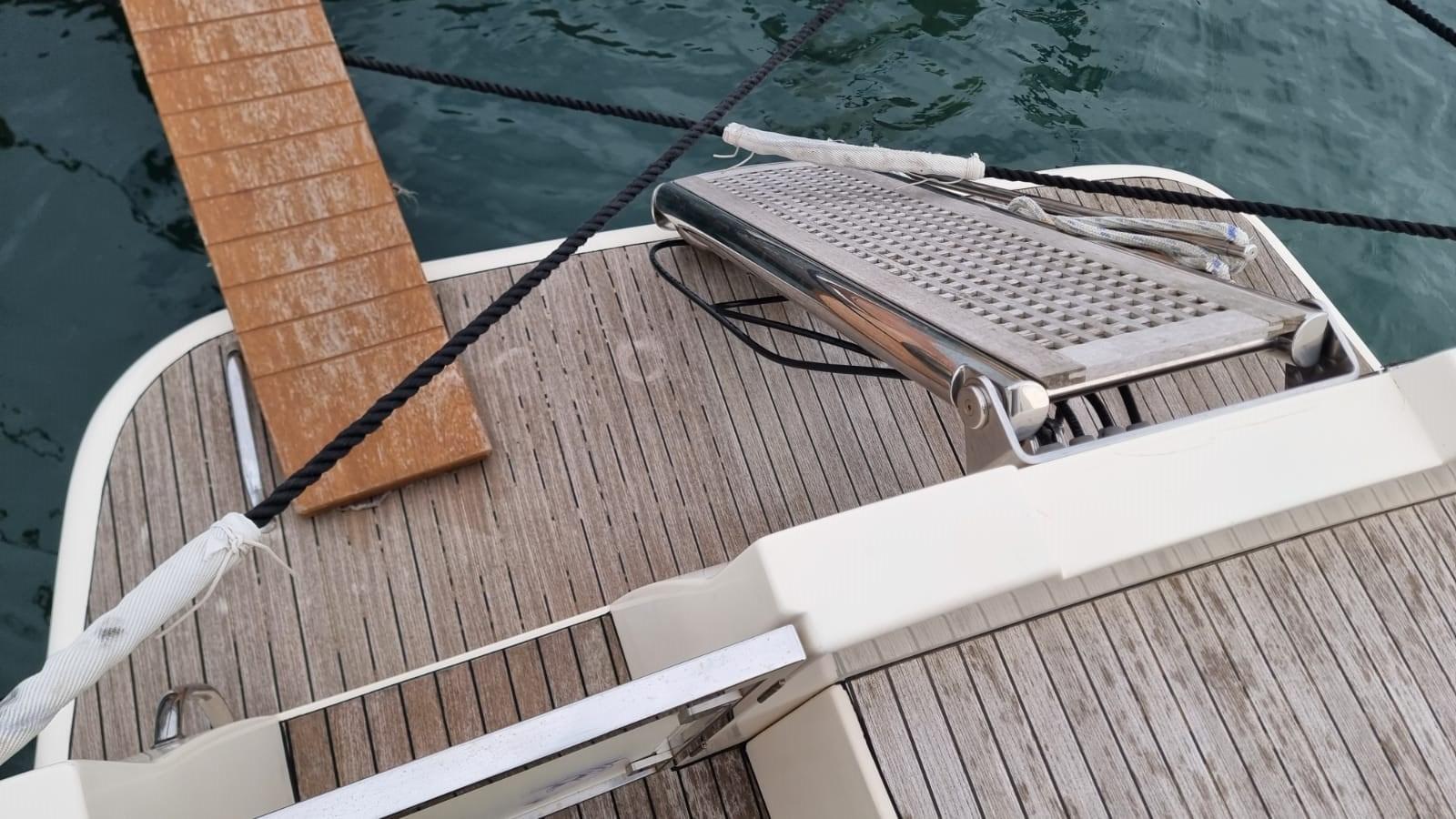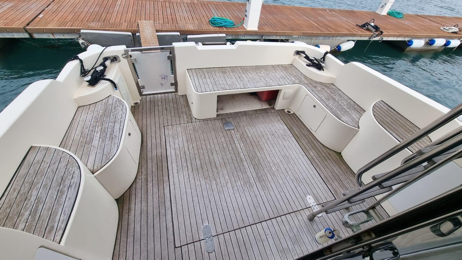 Engine Alarm, Bilge Alarm, Water pressure pump, 4 Batteries (2 servizi e 2 motori), Teak Side Decks, Battery charger (Nuovo 2024), Deck Shower, Twin Steering, Directional Spotlight, Hydraulic Flaps (N°2), Fire Extinguishing System, Flaps Indicators, Gangway (Idraulica Fontanel), Platform, Automatic Bilge Pump, Electric Bilge Pump (3 pompe), Manual Bilge Pump, Entry door, Teak Cockpit, Shorepower connector, Voltage Rectifier, Rollbar, Electric Windlass, swimming ladder, Living Room Foldable Table, Horn.