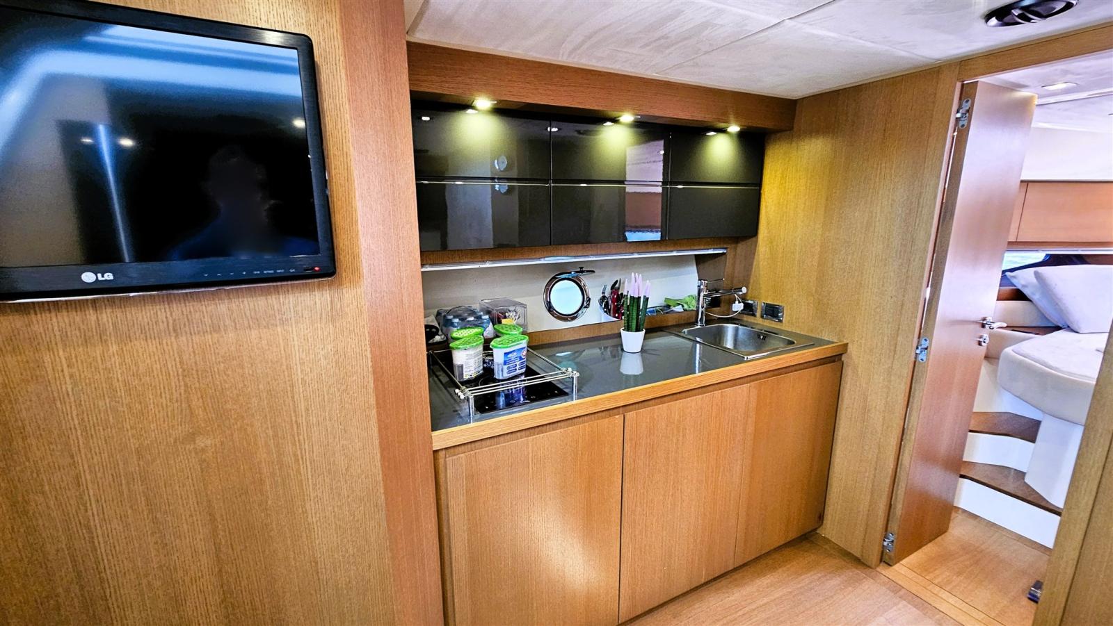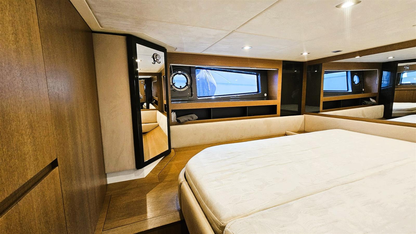 Full relaxation is guaranteed by the outdoor area, where a separate sundeck, dinette and chaise longue form a single integrated area dedicated to well-being, convenient storage and an ergonomic galley, with large hull windows, which guarantee maximum interior brightness. The ergonomics of the instruments on the helm station are designed to offer maximum functionality.