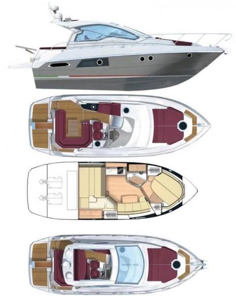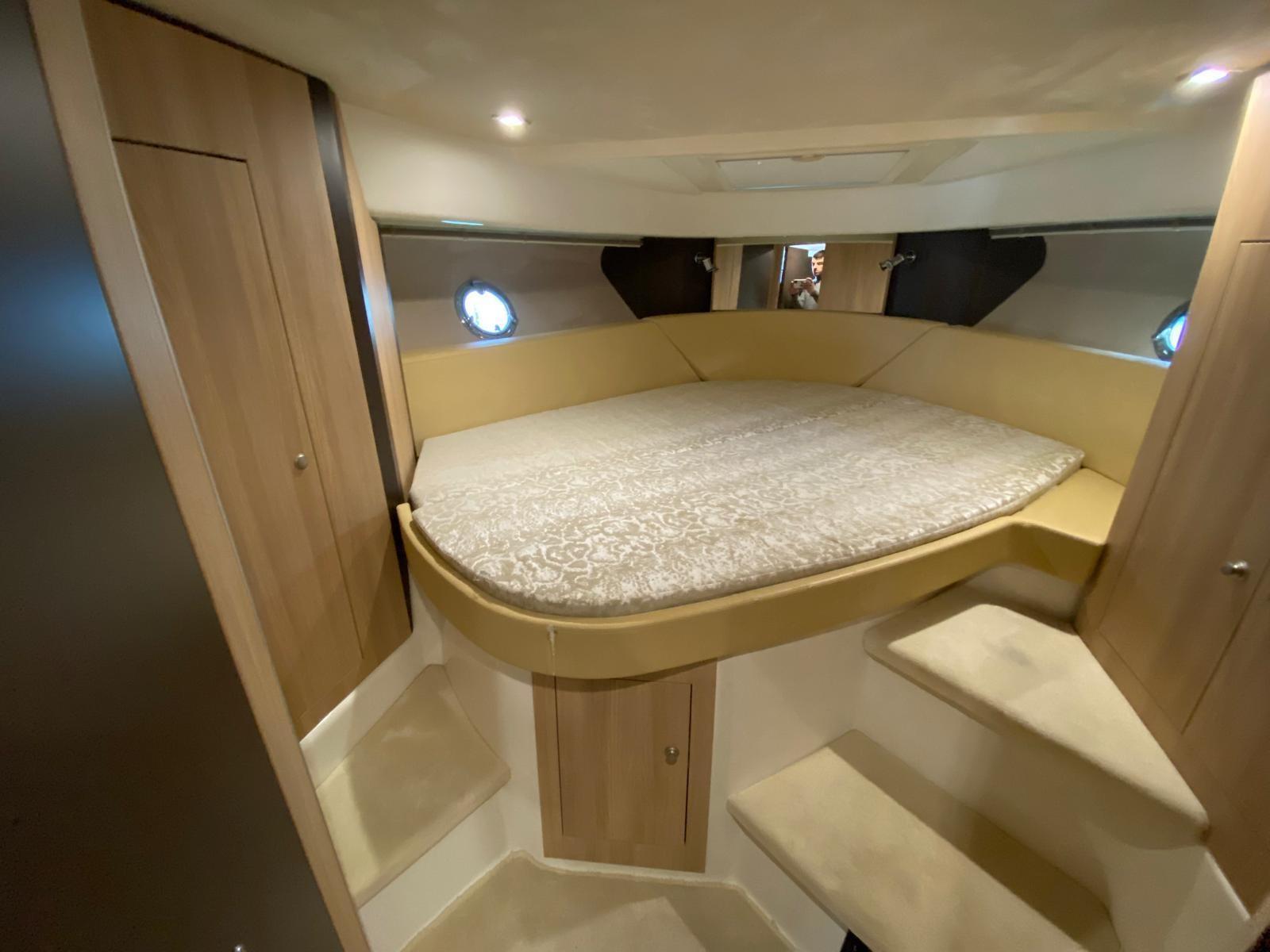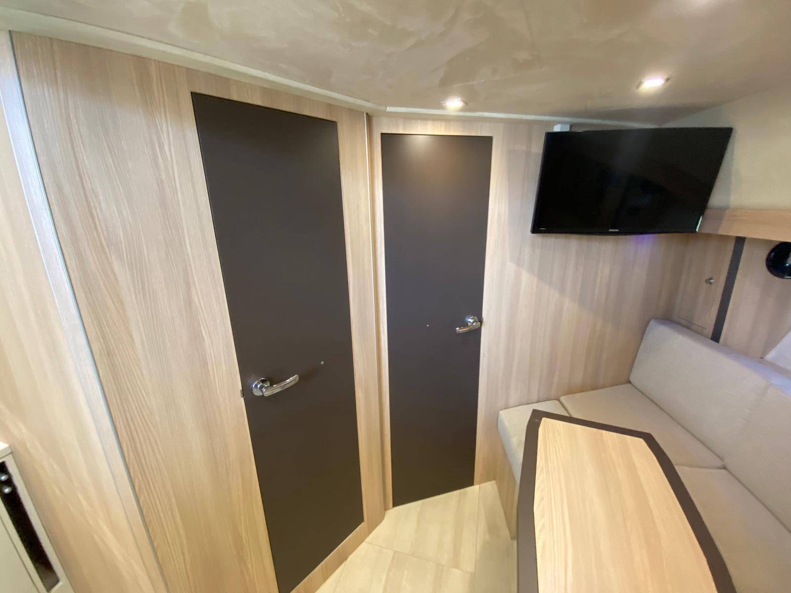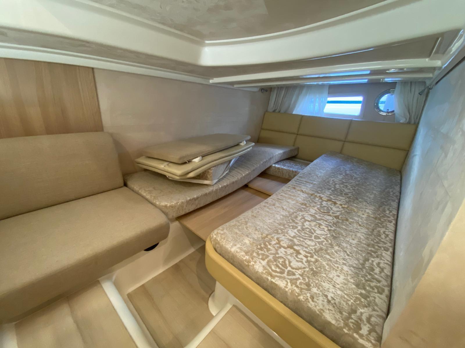 Luxury Interior and Roominess: Below deck, the M38 HT surprises with its excellent use of space. It typically has two double cabins (owner's cabin forward and guests aft) and a bathroom, offering exceptional privacy and habitability for a 38-footer. The finishes are of high quality, with precious woods and elegant fabrics.