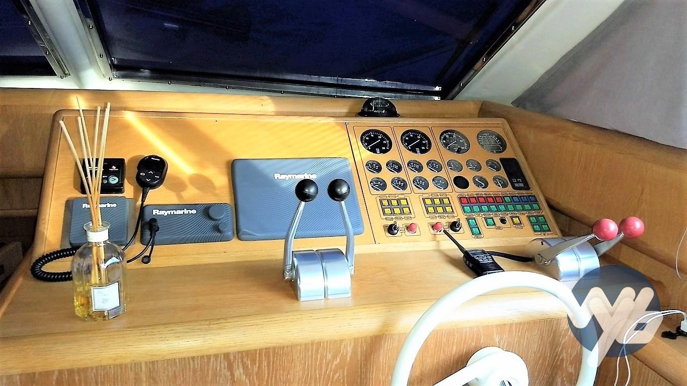 New instrumentation: Gps. Pilot. Echo. Radar. Vhf. Wind station. Stern mooring camera. Total replacement of carpet with mahogany floor. Total treatment of interior furniture. Blinds in the saloon and in all cabins. Full outdoor cushions. Full interior cushions. Cockpit awning and flybridge. Tenders and outboards. Cockpit table and chairs. Retractable TV dinette. Anti-theft alarm. Satellite dome.