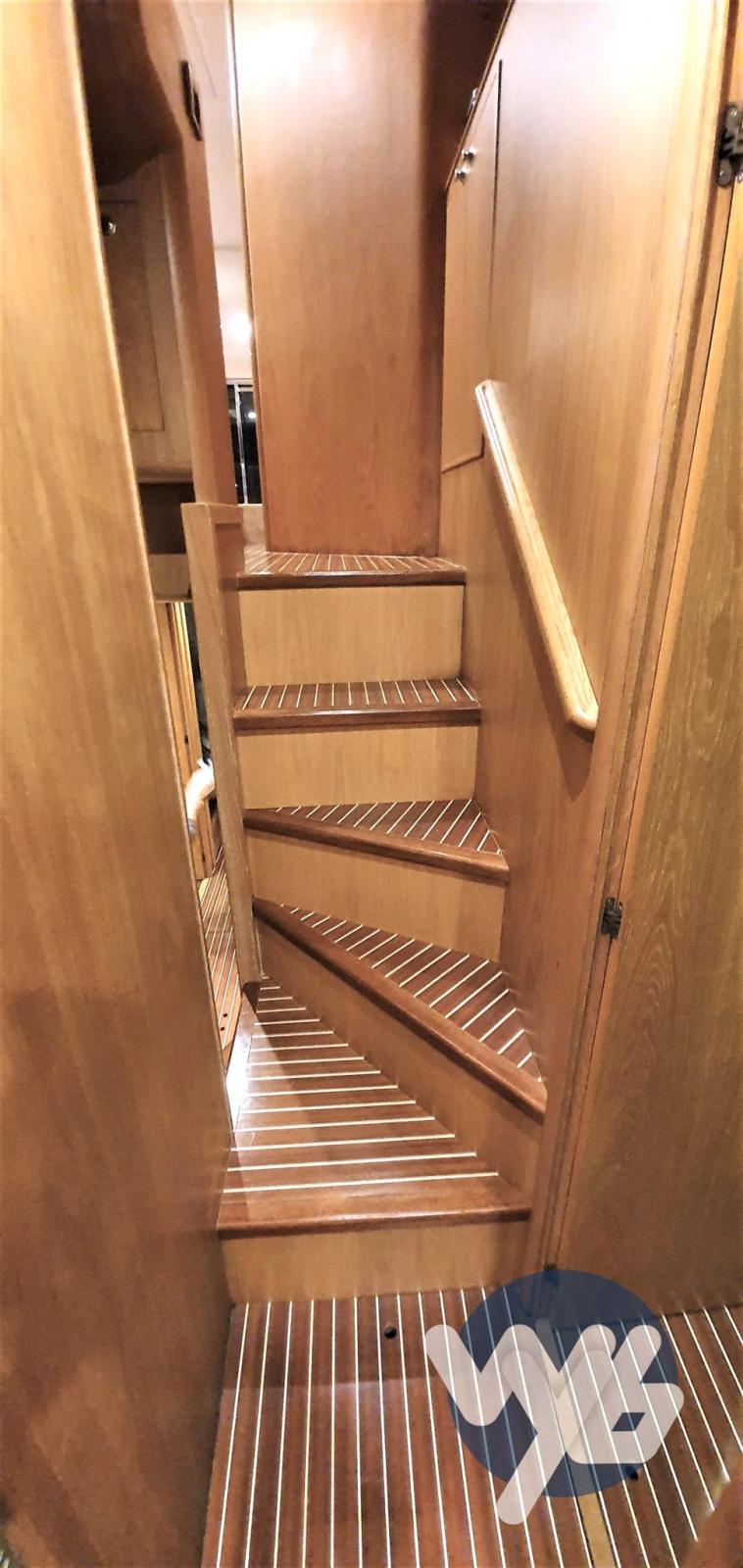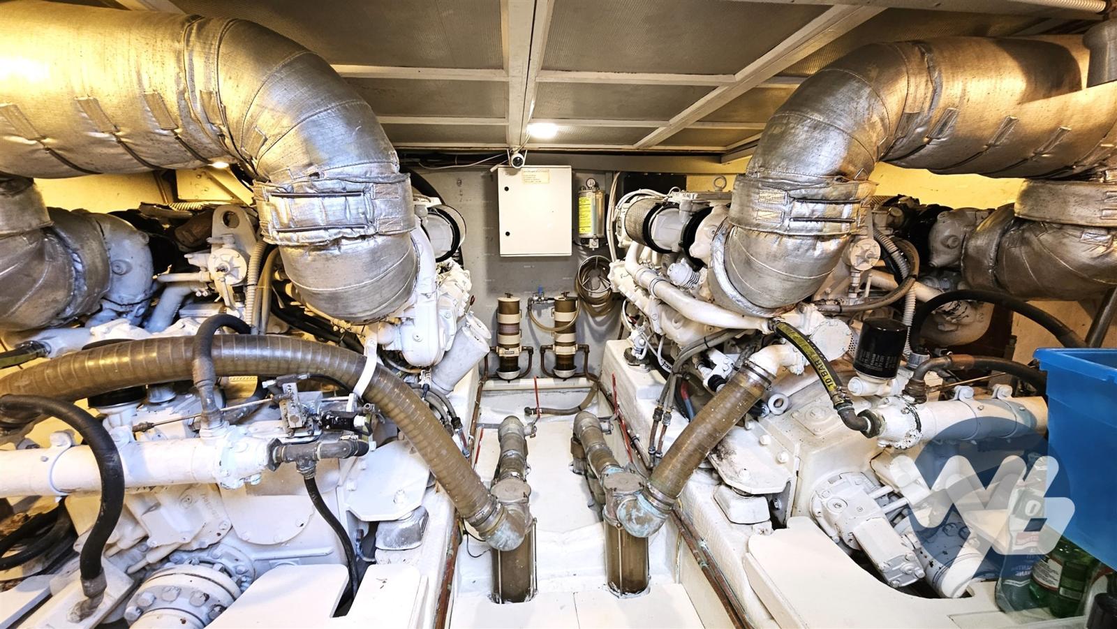 Engine Alarm, Bilge Alarm, 2 Water pressure pump, 9 Batteries, Draining System, Deck Shower, Twin Steering, Directional Spotlight, Hydraulic Flaps, Fire Extinguishing System, Anchor Chain Washdown, Gangway, Platform, Automatic Bilge Pump, Manual Bilge Pump, Entry door, Side door, Teak Cockpit, Shorepower connector, Water harbor connector system, Electric Windlass, swimming ladder, cockpit table, Tender, Horn, Stern Winches, Bow Winches.
