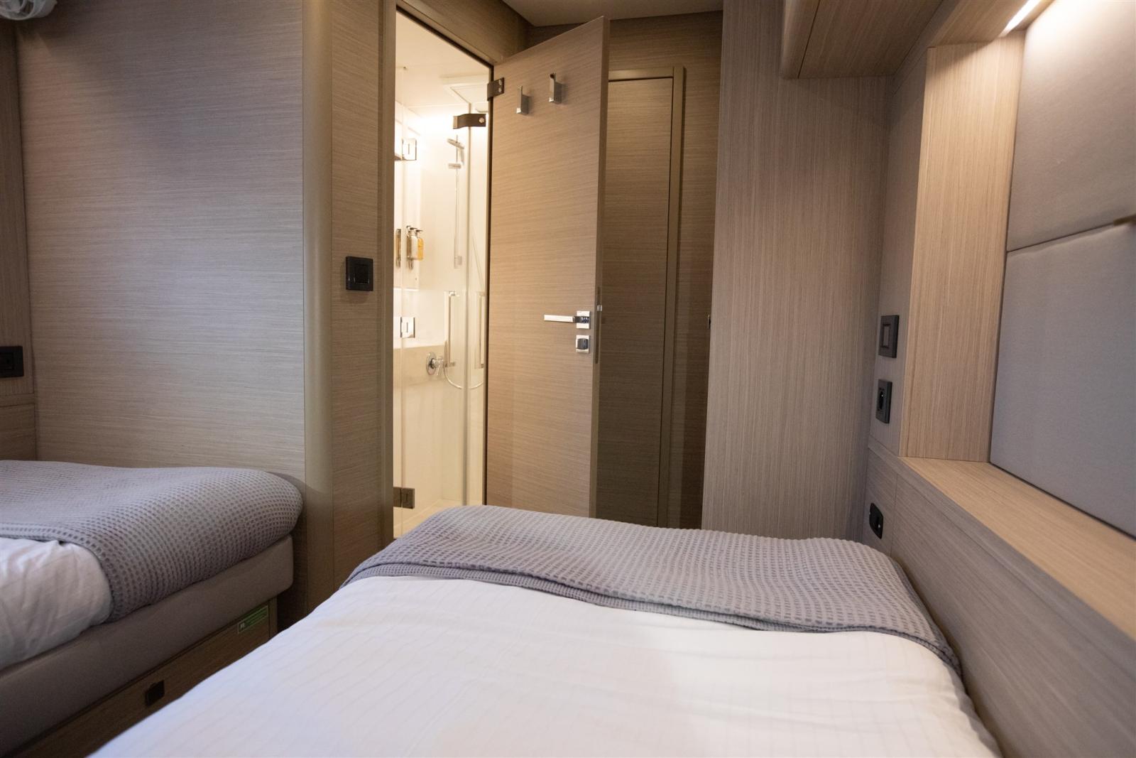 2 Crew Cabins 2 Bathrooms/Crew Cabin Ergonomically refurbished starboard side to include fixed bunk beds and separate shower/WC and ample storage space