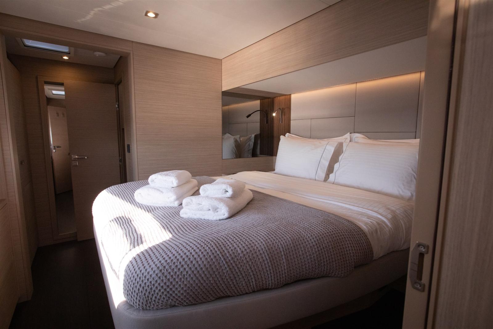 The elegant saloon features a contemporary open-plan design with refined finishes, designer furnishings and a fully equipped kitchen perfect for entertaining both informally and formally. The accommodation includes 4 large en-suite cabins, with an exceptional master suite offering panoramic views and private access, a true floating apartment.