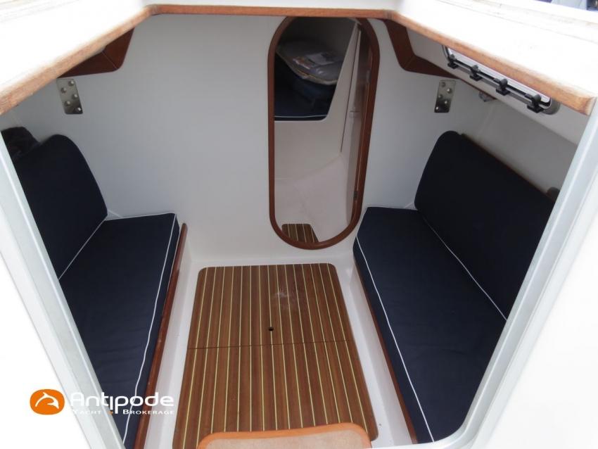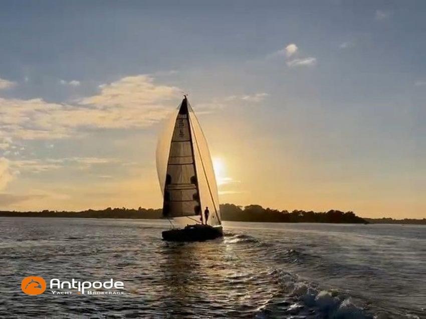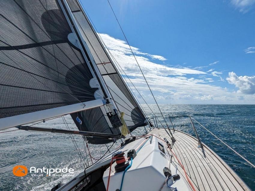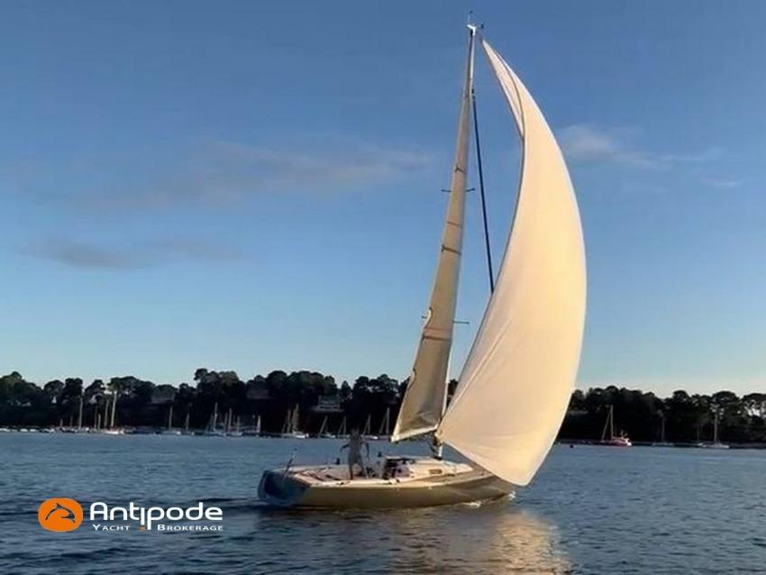 J 100, 2008, Volvo D1 13 B, 12 hp (195.8 hrs), 2 bunks in saloon + 2 bunks in forward peak, 1 manual toilets + sink, Forward pushpit, stanchions and lifelines, Teak deck passageway, Teak slatted cockpit floor, Winter covering, Carbon mast, keel stepped, aluminium boom, Classic standard main sail - BX Incidences 2020, Main sail mast track + batten cars, Genoa roller furling with above deck drum - Harken, Furling genoa - BX Incidences 2020, Asymmetric spinnaker - Europ Sails, Adjustable backstay (hydraulic - actually on service), Cockpit tiller autopilot - Raymarine ST 1000 2018 (connections renewed in 2024), Navigation system - Tacktick, Wind pack - Tacktick, 2 repeaters at mast foot - Tacktick, 1 wireless remote control - Tacktick, Portable Icebox IGLOO, 220 V shore power + battery charger, Engine battery, Service batteries, Fresh water manual pump, No safety equipments, Dinghy, Located Brittany. For more information or to make an appointment for a visit, contact : Jean-Baptiste Lemaire +33 6 10 25 00 03 - jb@antipode-yachts.com