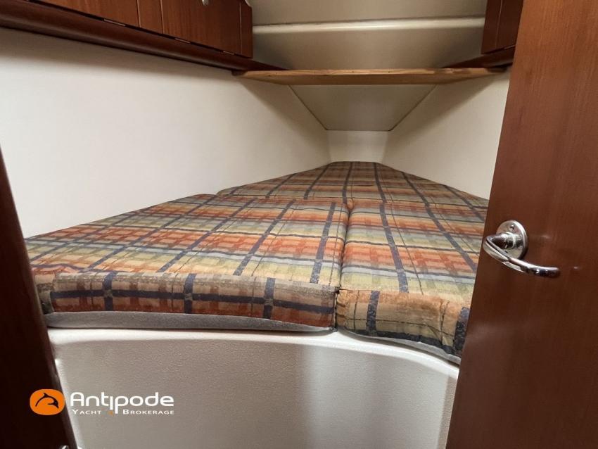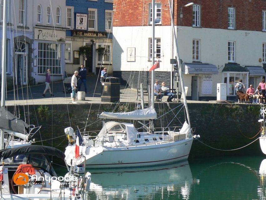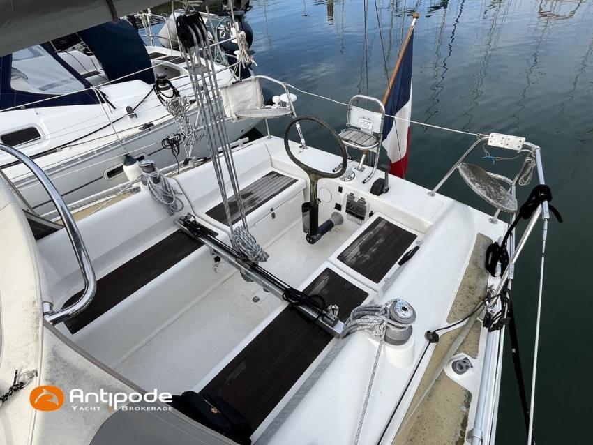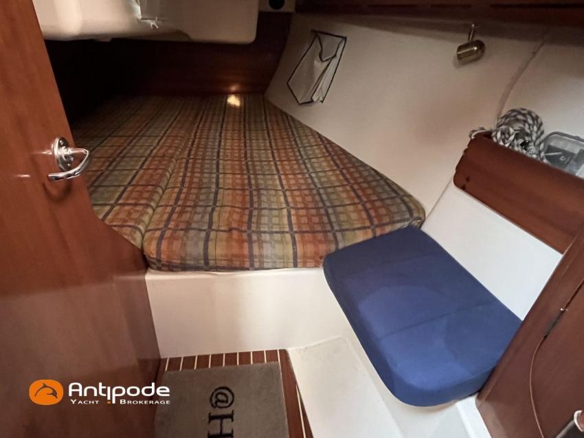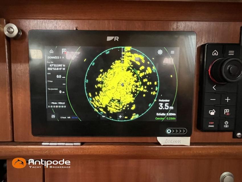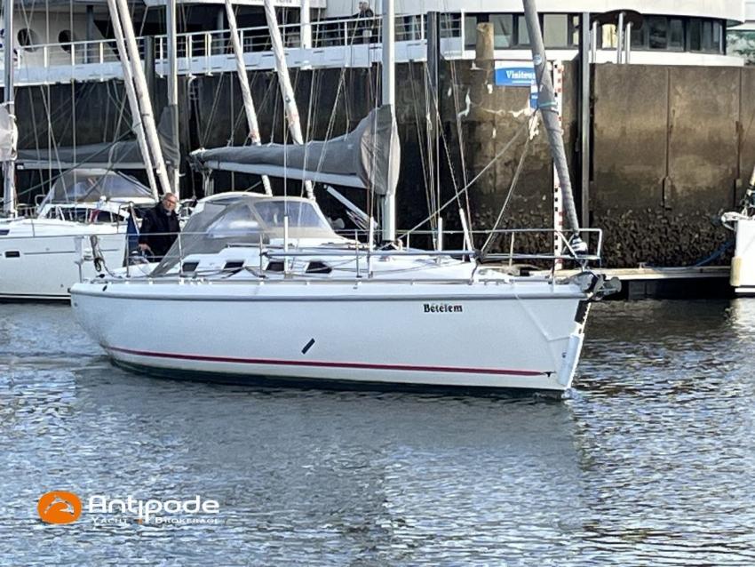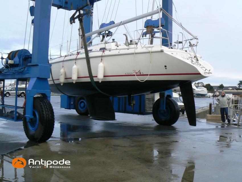 ETAP 34 S, 2000, Volvo 2030 MD, 29 hp (3746 hrs), Interior layout version 1 forward cabin, 1 aft cabin, Genoa sheets cars adjustable from cockpit, Cockpit sprayhood - 2020, Electric windlass - 1000 W, Stainless steel cable standing rigging - 2015, Forestay - 2025, Full batten main sail 2 reefs - North Sails Norlam 2025, Main sail mast track + batten cars - Facnor 2017, Main sail lazy bag - 2020, Genoa roller furling with above deck drum - Furlex 200, Furling genoa - North Sails Norlam 2023, Releasable baby-stay and hardware, Jib for releasable baby stay - Sextant, Aluminium spinnaker pole + telescopic pole, Triradial classic spinnaker - North Sails 2013, Asymmetric spinnaker - Elvstrom, Raymarine in board autopilot - SPX 10 Evolution 2022, Navigation system - Raymarine I 70 2024, GPS and chartplotter (nav station) - Raymarine Axiom 9 + 2021, GPS and chartplotter (cockpit) - Raymarine Axiom 9 2021, Electronic navigation charts, Radar with radome radar fitted on mast - Raymarine 2015, AIS Transponder CLASS B (emission and reception) - Raymarine Class B 2014 , VHF + cockpit station- HX 870 E 2017, VHF cockpit speaker, Navtex - Furuno NX 300, Radio CD + speakers, Distress beacon - Epirb 2022, Fridge unit 12 V (top opening door) - 2023, Water heater 220 V and engine heat exchanger, Hot and cold pressurized water, 2 burners cooker + oven - 2022, 220 V shore power + battery charger, Engine battery - 74 amp/h 2021, Service batteries - Lithium 2 X 90 amp/h 2017, Interior 220 sockets, Battery controller - Victron, Heating system EBERSPACER - 2014, Seacocks replaced 2021 and 2024, Solar panels - 130 W 2019, Liferaft 4 men serviced 2024 - 4W 2019, Delta anchor 16 kg + chain 60 m, Dinghy - Zodiac Aero 230, Outboard engine - Honda 2 cv / hp, Located Brittany. For more information or to make an appointment for a visit, contact : Jérôme Le Joubioux +33 6 07 45 71 73 - jerome@antipode-yachts.com