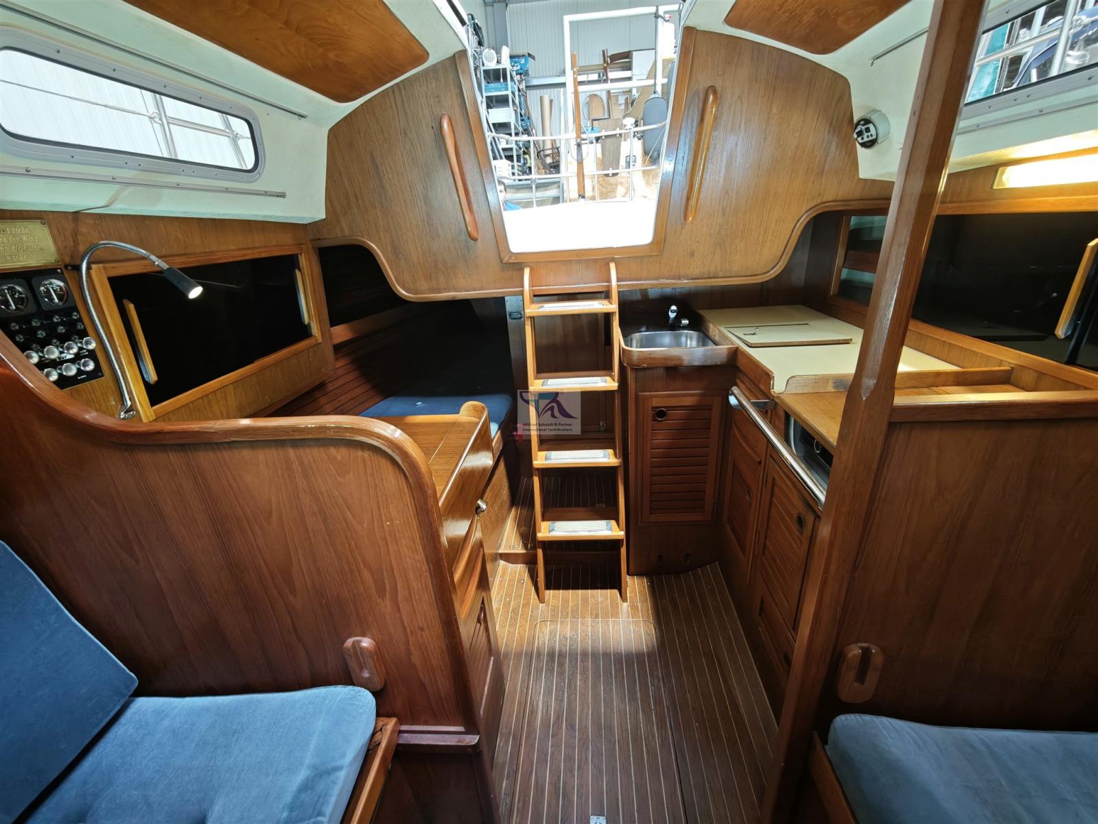 2 Batteries (95 Ah und Starter 60Ah, neu 2025), Teak Side Decks, Battery charger (Victron, Bluetooth, neu 2025), Shore power cable (Landstrom nachgerüstet, neu 2025), Guard rail, Teak Cockpit (Bänke, sonst Gräting), 5 Winch.