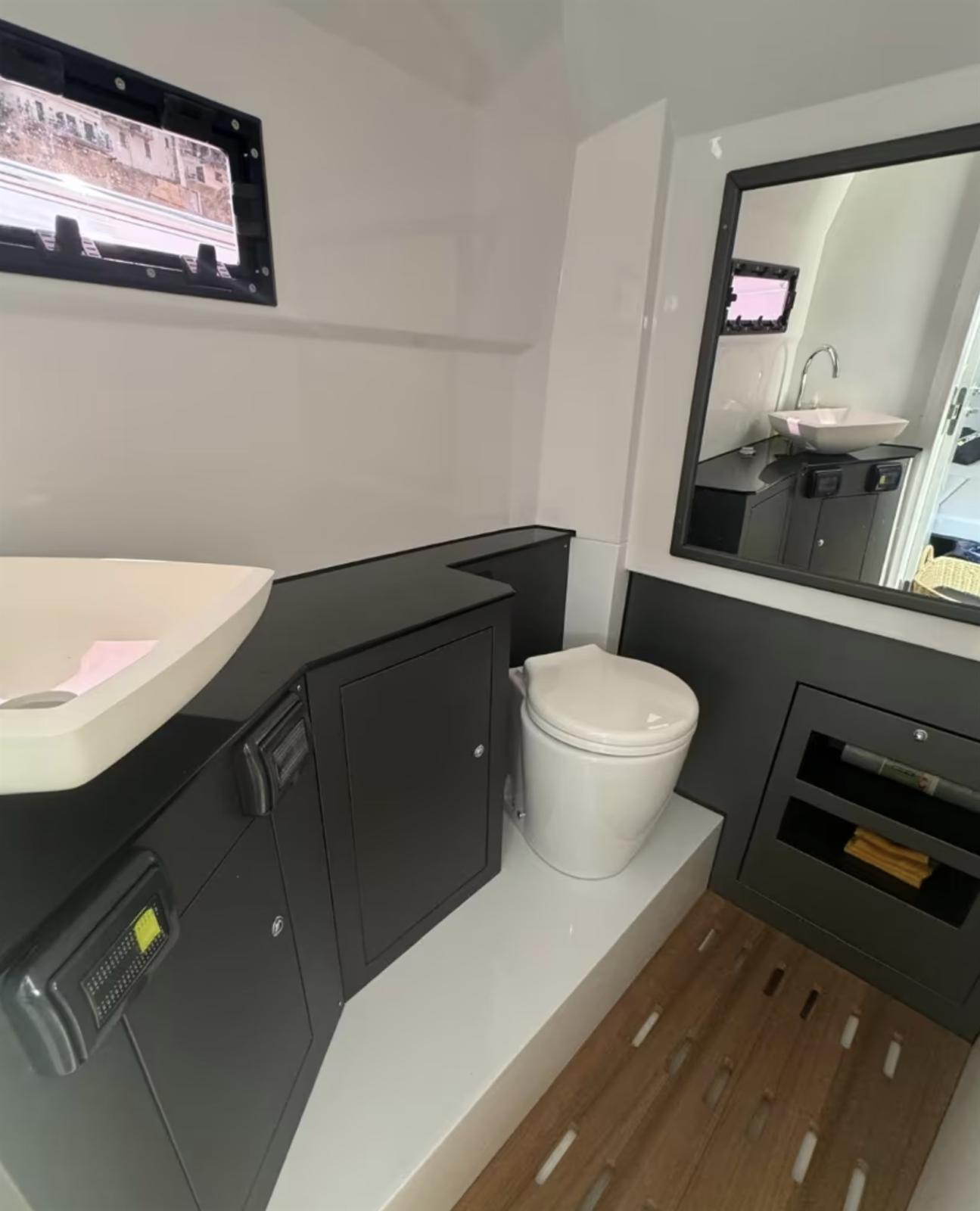 Warm Water, Warm Water System, Waste Water Plant, 12V Outlets, 220V Outlets, Electric Toilet.