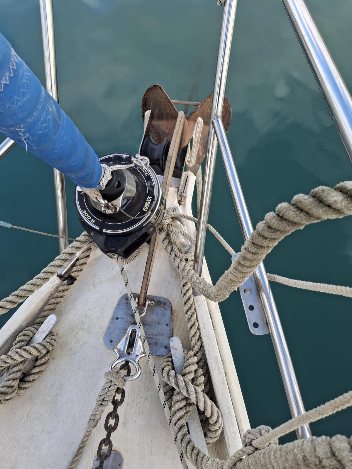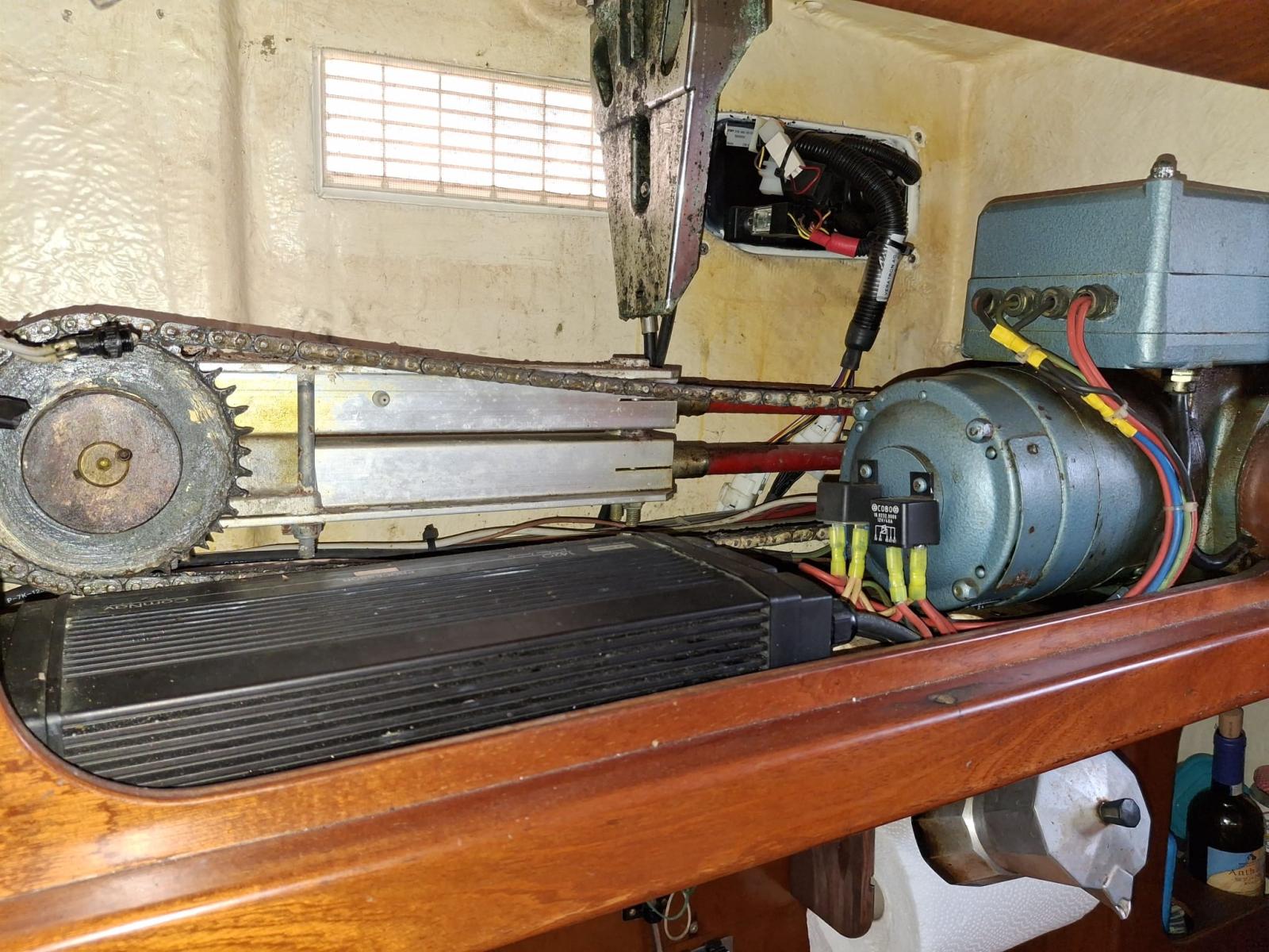 Rudder angle indicator, Autopilot (Neco), Plotter with GPS antenna, Wind Station (B&G).