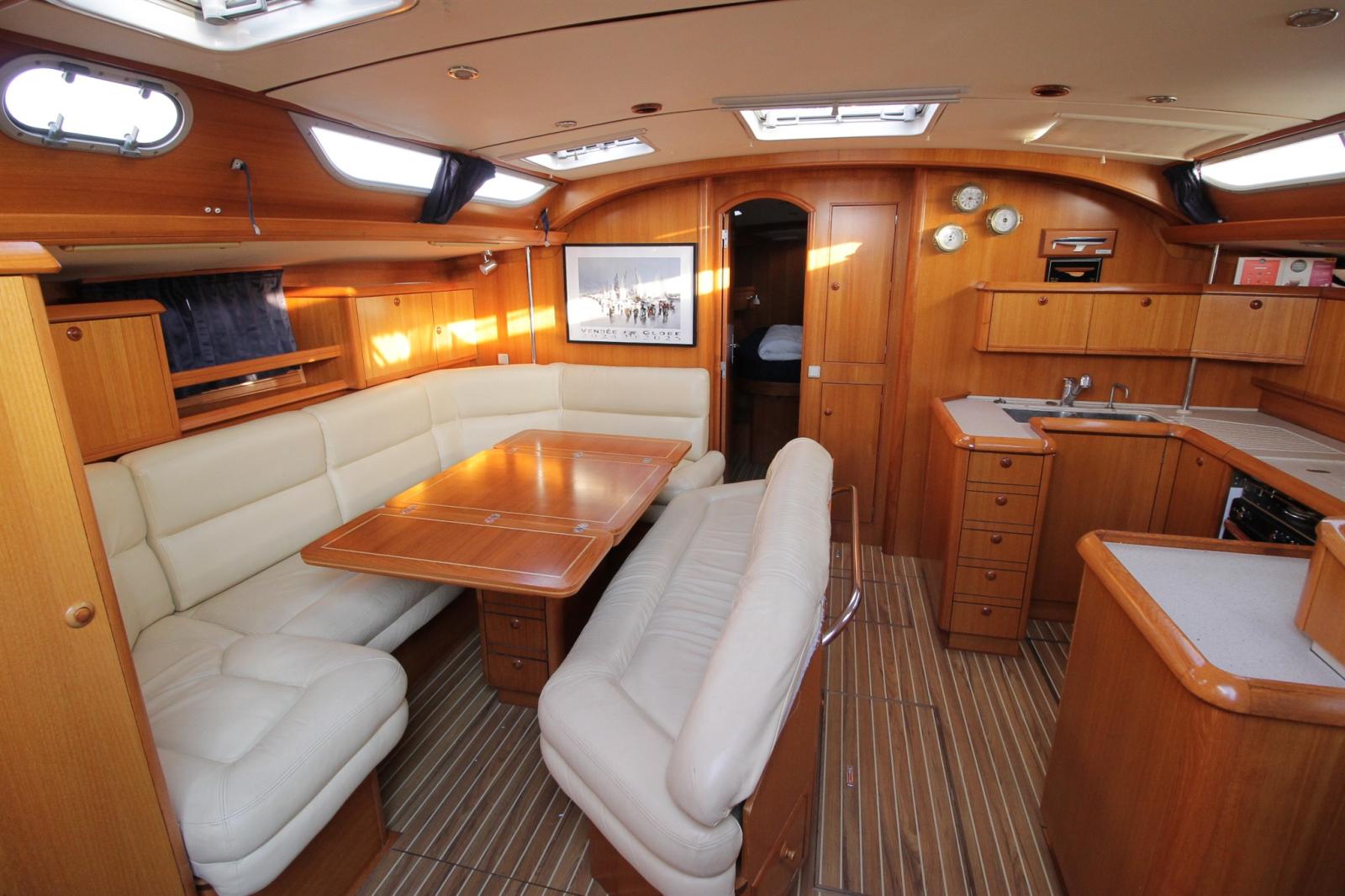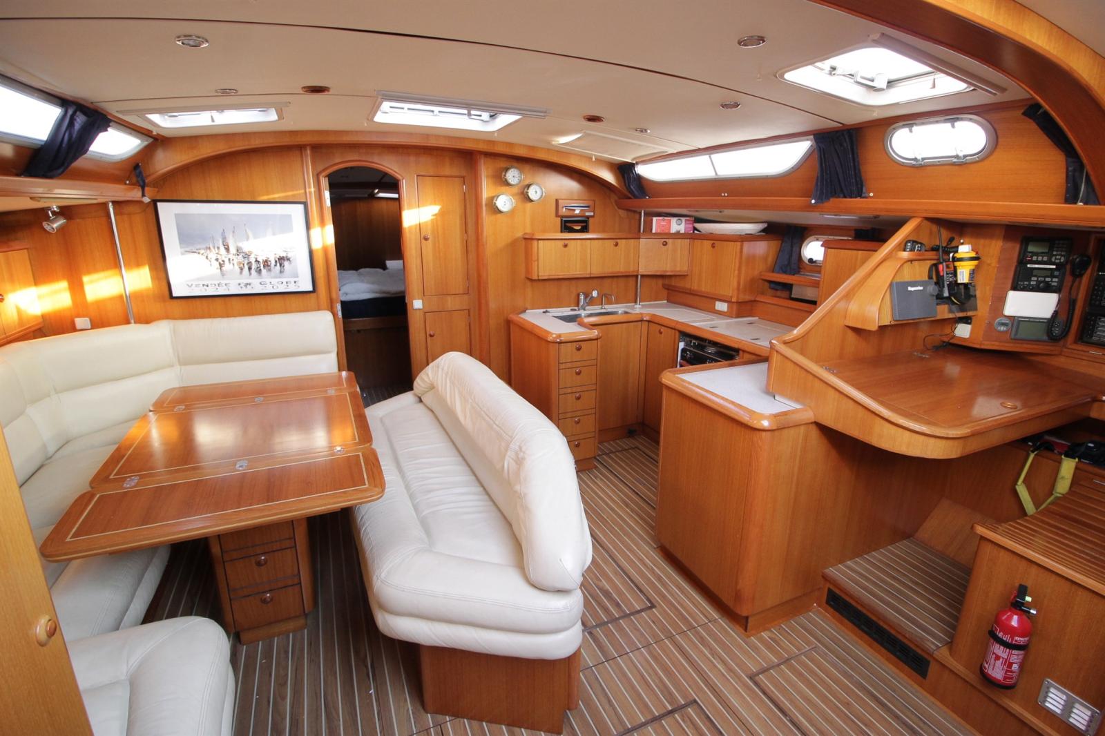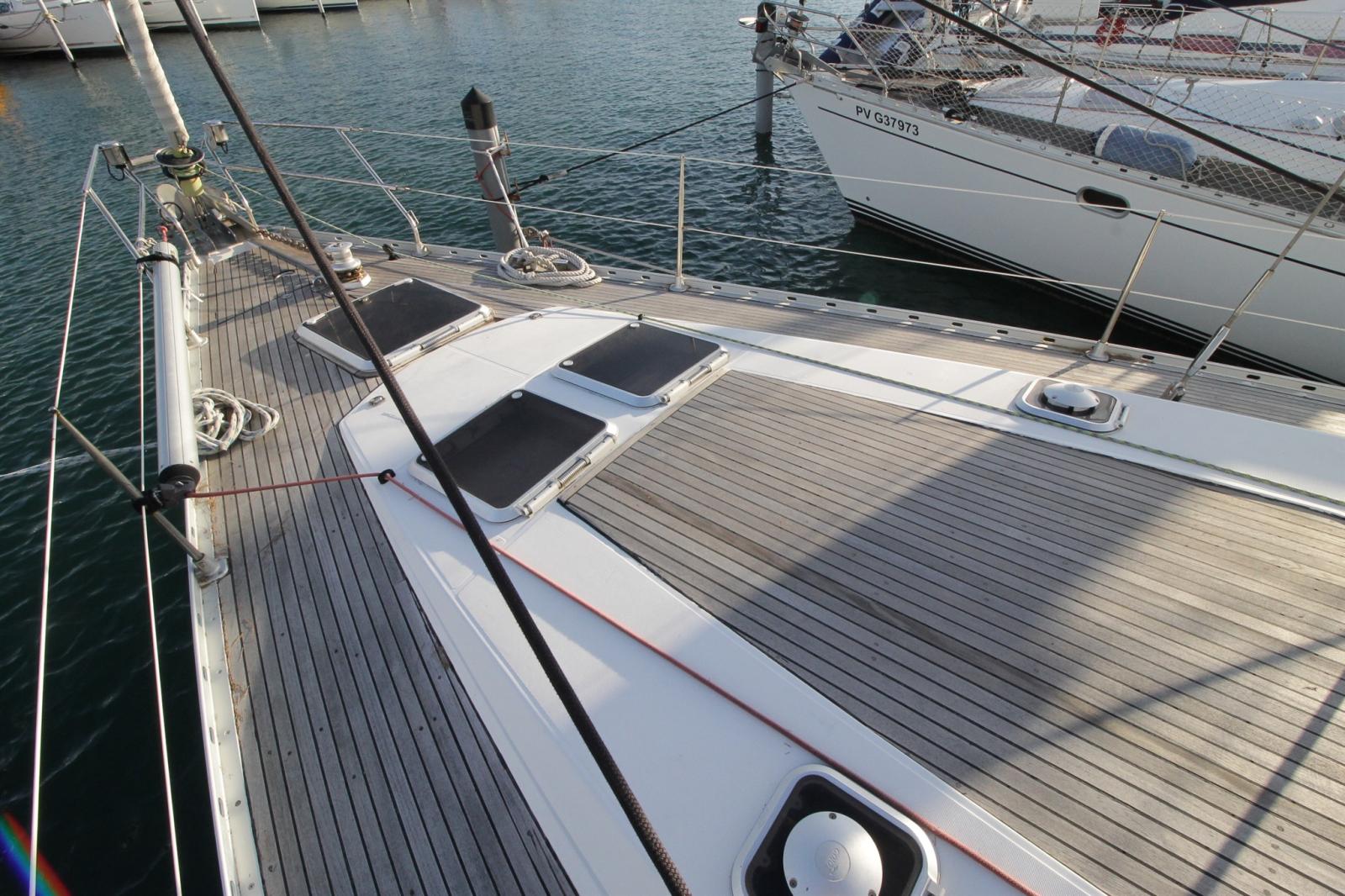 Engine Alarm, Anchor (30kg), Selftailing winch, 3 Batteries (x140ah), Battery charger (remplacé par victron phoenix 50ah), Deck Shower (avec eau chaude), Twin Steering, Bow Thruster (rétractable), Tender Crane (sur portique INOX), Battery Monitor, Auxiliary Engine, 2 Solar panels (x300w), Platform, Automatic Bilge Pump, Teak Cockpit, Electric Windlass (avec chaine 80m de chaine de 12), cockpit table (neuve réalisée par un menuisier), Tender (neuve), 3 Winch Electric.