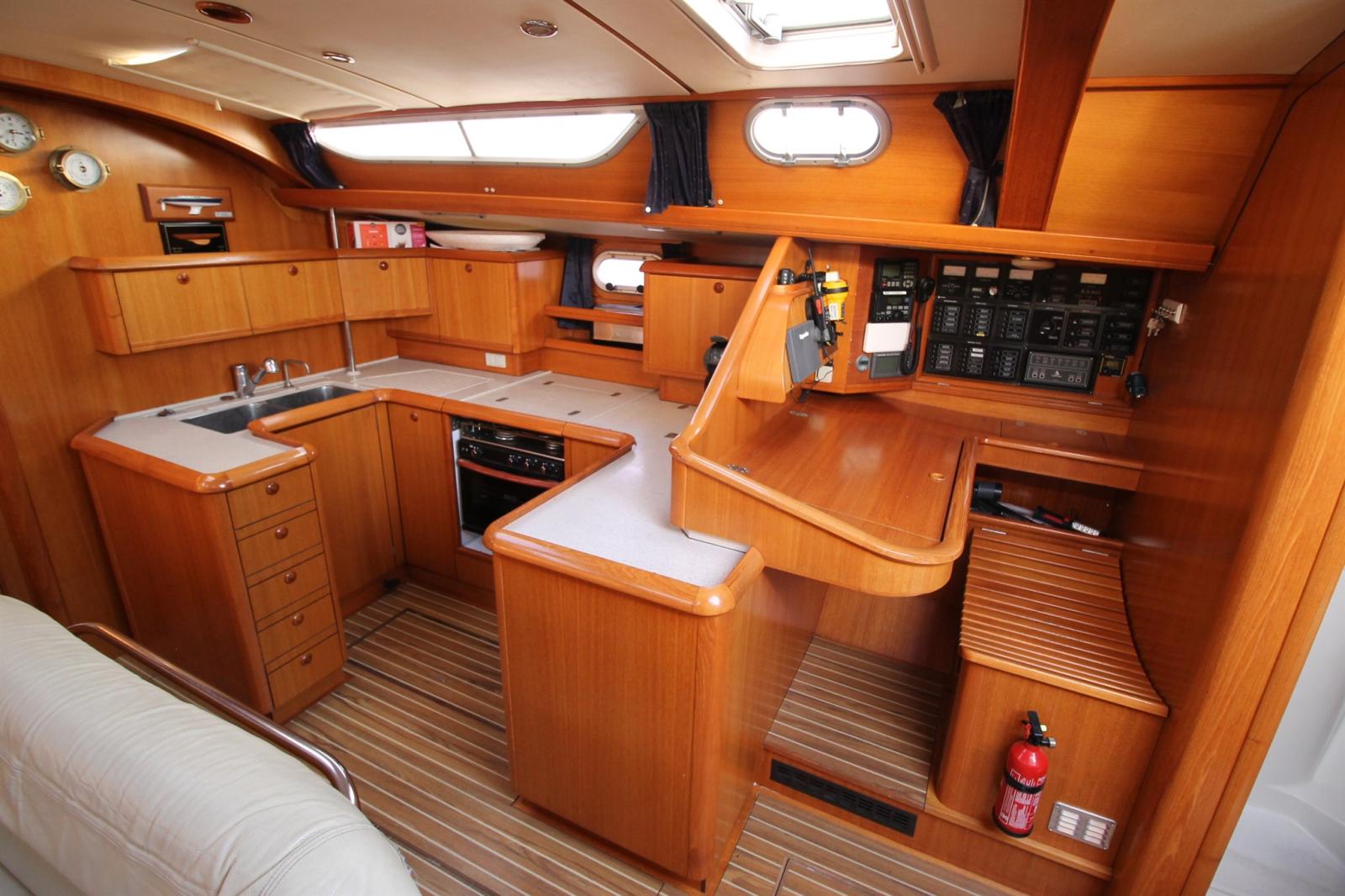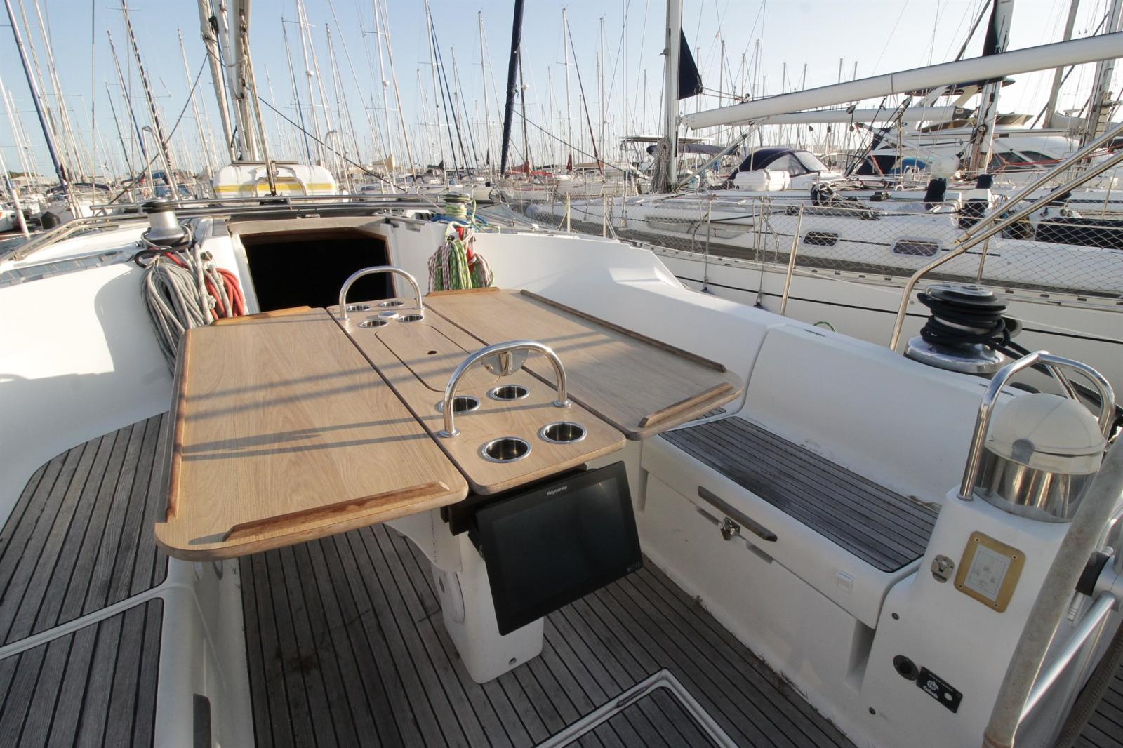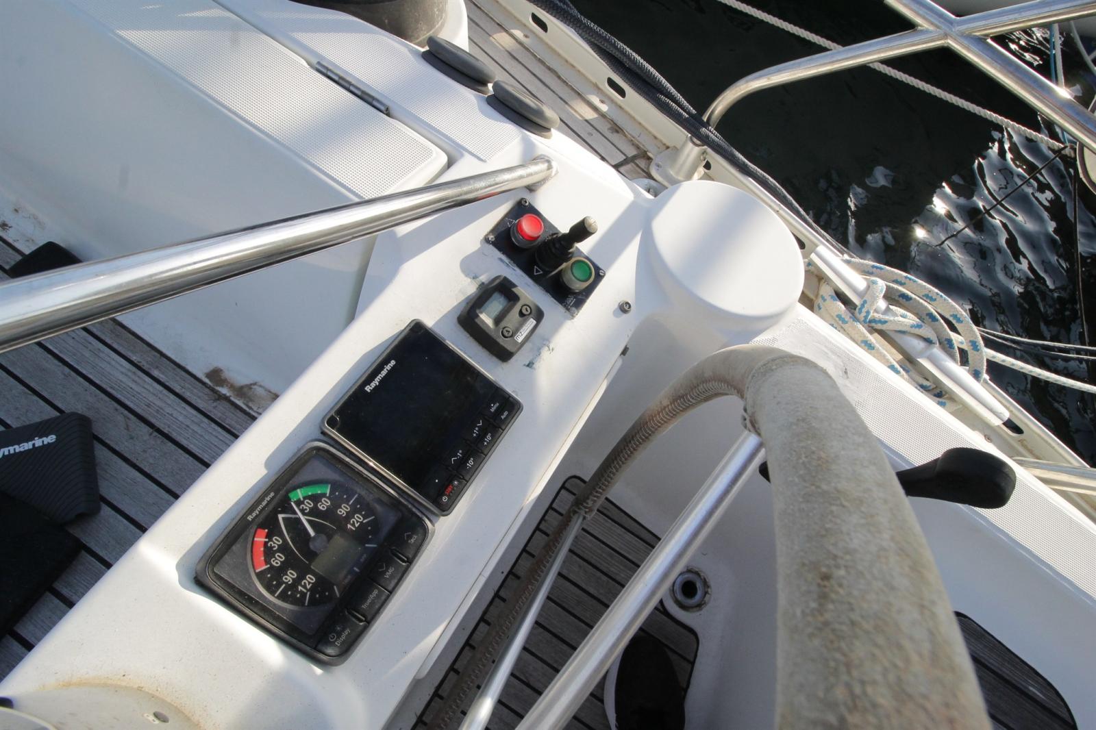 AIS (CLASSE B Raymarine 7000 (émetteur, recepteur)), 2 Compass, Odometer (sur lecteur de carte), DSC vhf (HX210 STANDARD HORIZON avec retour cockpit), Navigation lights (LED), Autopilot (remplacé : raymarine EV 400 avec deux pupitres P70S), 2 Chartplotter (Raymarine Hybrid Touch), VHF Radio (portable), Sonar (sur lecteur de carte), Wind Station (Raymarine I60S).