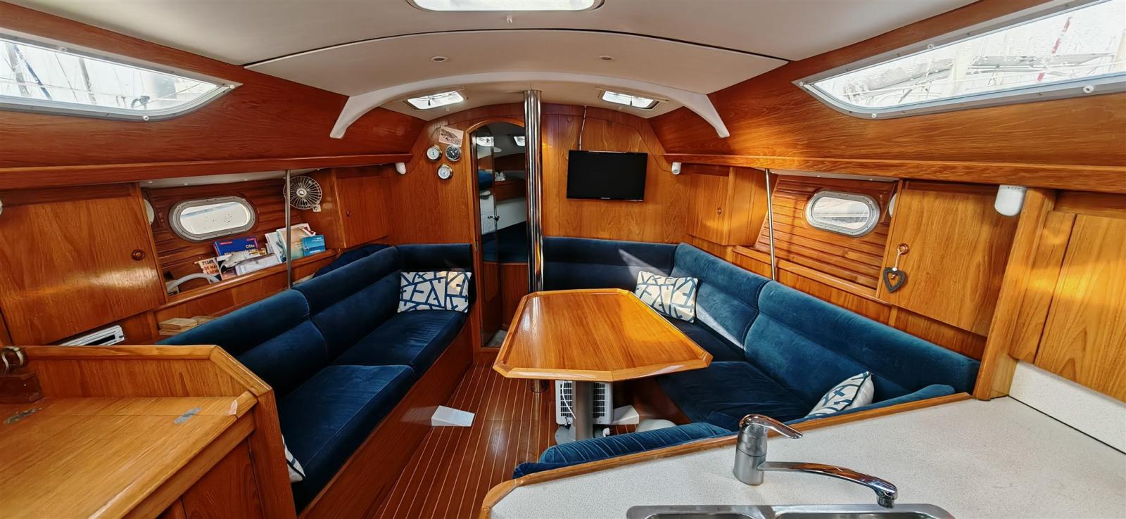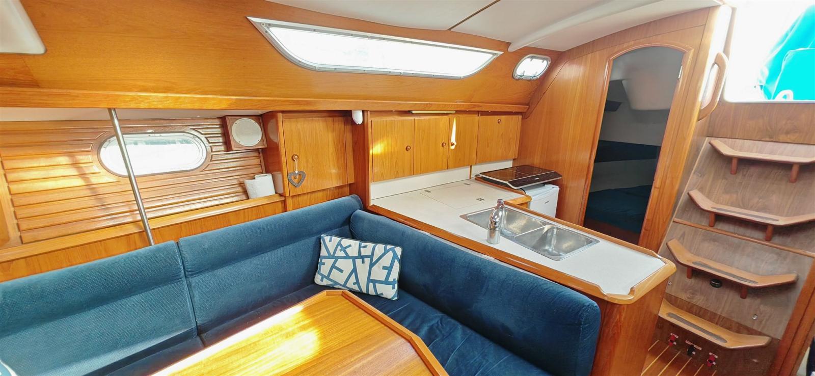 The company PHILIPPE PLAISANCE 100 % Voiliers is pleased to offer you a SUN ODYSSEY 36.2 in a two-cabin version and a deep draft (1.80 m). Solid, seaworthy and particularly large for its category, this sailboat offers in its two-cabin configuration, a large aft berth and a large bathroom. This second-hand car benefits from the large 40 hp engine, recent electronics, an AIS, 200 W solar panels, custom-made cockpit upholstery, winch covers, table and console, a black water tank as well as a B&G ZEUS map reader centralizing all navigation information. Engine maintenance is up to date. Berth and handover possible.