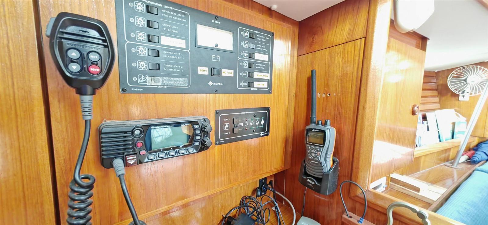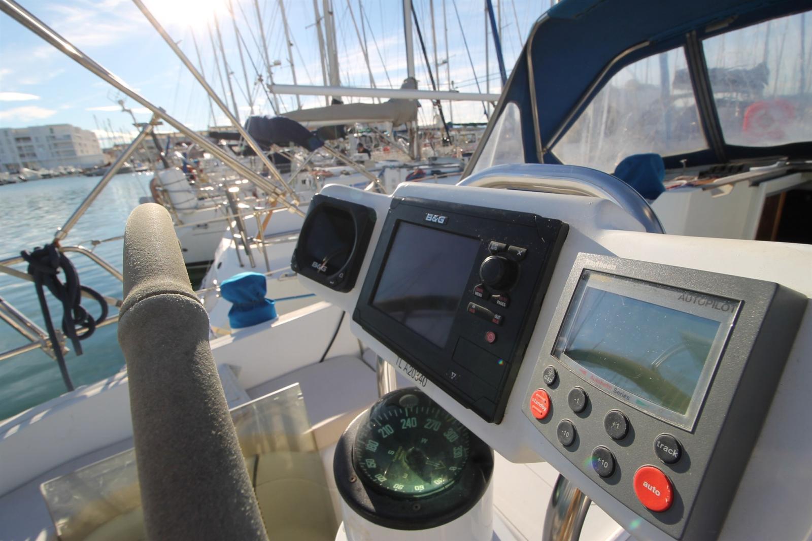 AIS (Emetteur/Récepteur), DSC vhf (STANDARD HORIZON GX1400GPS de 2023), Autopilot (ST5000+ Autohelm TYPE 1 (connection a girouette et lecteur carte en NMEA0183 par connection au Miniplex. Modes girouette et waypoint), Chartplotter (B&G ZEUS Touch 7 pouces avec cartographie de 2023), VHF Radio (COBRA MARINE HH350), Sonar (B&G TRITON 2), Wind Station (Girouette B&G 508).