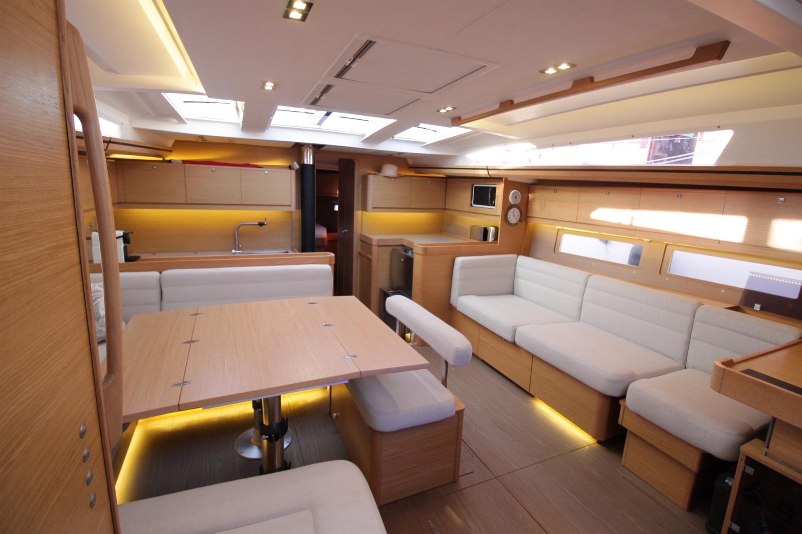 The company PHILIPPE PLAISANCE – 100 % voiliers is pleased to offer you a DUFOUR 512 GL from 2017, in a 3 cabin / 3 bathroom version. An elegant and racy sailboat on the water, it seduces just as much by the quality and refinement of its interior fittings. This 2017 unit is in excellent condition and particularly overequipped. In the cockpit, you will enjoy total comfort with plancha, sink, ice maker and elegant upholstery. On deck, the boat is equipped with a furling mainsail, an electric furling genoa, a Code 0, a sail hold, three electric winches, solar panels, a fore sundeck and the latest generation RAYMARINE electronics with several GPS screens. Inside, the comfort is on par with the large cruising units: 8 kW generator, two refrigerators, air conditioning, Webasto heating, three bathrooms, Bluetooth Fusion Hi-Fi system, pop-up TV and dim LED lighting, among other equipment. This sailboat has only 750 engine hours and offers a rare and particularly appreciable asset: a front and rear hydrojet system, greatly facilitating maneuvers in port. Berth and handover possible.