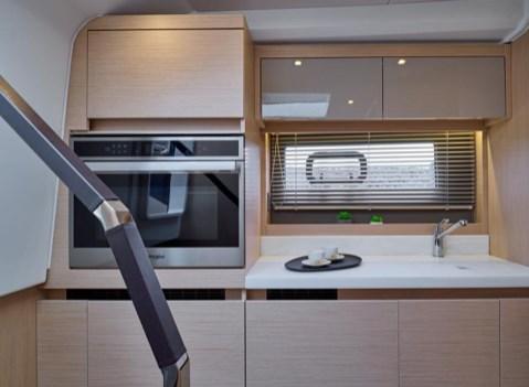 Engine Alarm, Bilge Alarm, Auto Dynamic Trim Interceptor, Auto-Trim, Teak Side Decks, Electric Flaps, Hard top, Fire Extinguishing System, Flaps Indicators, Washbasin in the cockpit, Courtesy Lights, Underwater lights, Platform, Teak Cockpit, Electric Windlass, cockpit table.