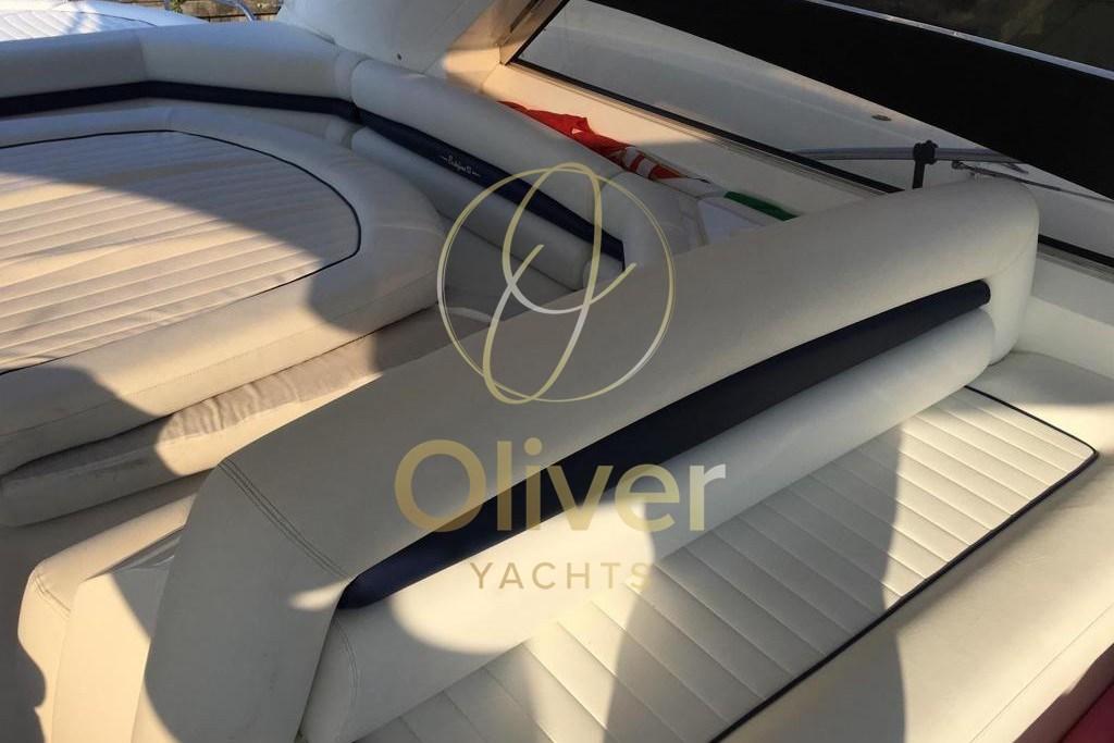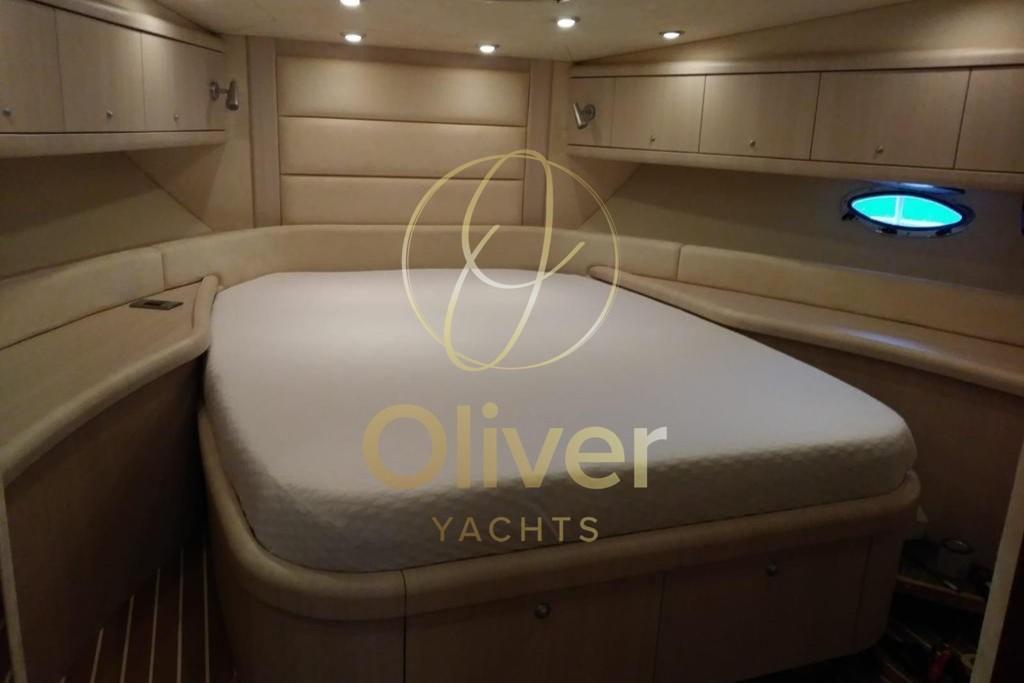 The layout includes 3 cabins and 2 bathrooms, an extremely refined configuration on an open of this length. The owner's cabin is large, bright and equipped with an en-suite bathroom, offering comfort and privacy comparable to higher category boats. The two guest cabins are well sized and served by the second bathroom, making the boat perfect for cruises with family or friends as well.