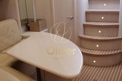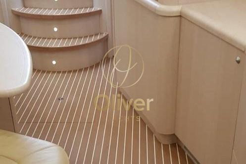 Fume/Gas Detector, Engine Alarm, Bilge Alarm, Alternator, Electric Engine Compartment Opening, Water pressure pump, Auto-Trim, Shore power cable, Special Colour (SCAFO BLU), Guard rail, Safety rail, Deck Shower, Directional Spotlight, Anchor mount, Hydraulic Flaps, Hard top, Fire Extinguishing System, Flaps Indicators, Washbasin in the cockpit, Courtesy Lights, Fenders, Gangway (IDRAULICA), Platform, Waste Water Tank Drain Pump, Automatic Bilge Pump, Manual Bilge Pump, Deck Wash Pump, Teak deck, Entry door, Teak Cockpit, Shorepower connector, Electric Windlass, swimming ladder, cockpit table, Horn, Stern Winches, Bow Winches.