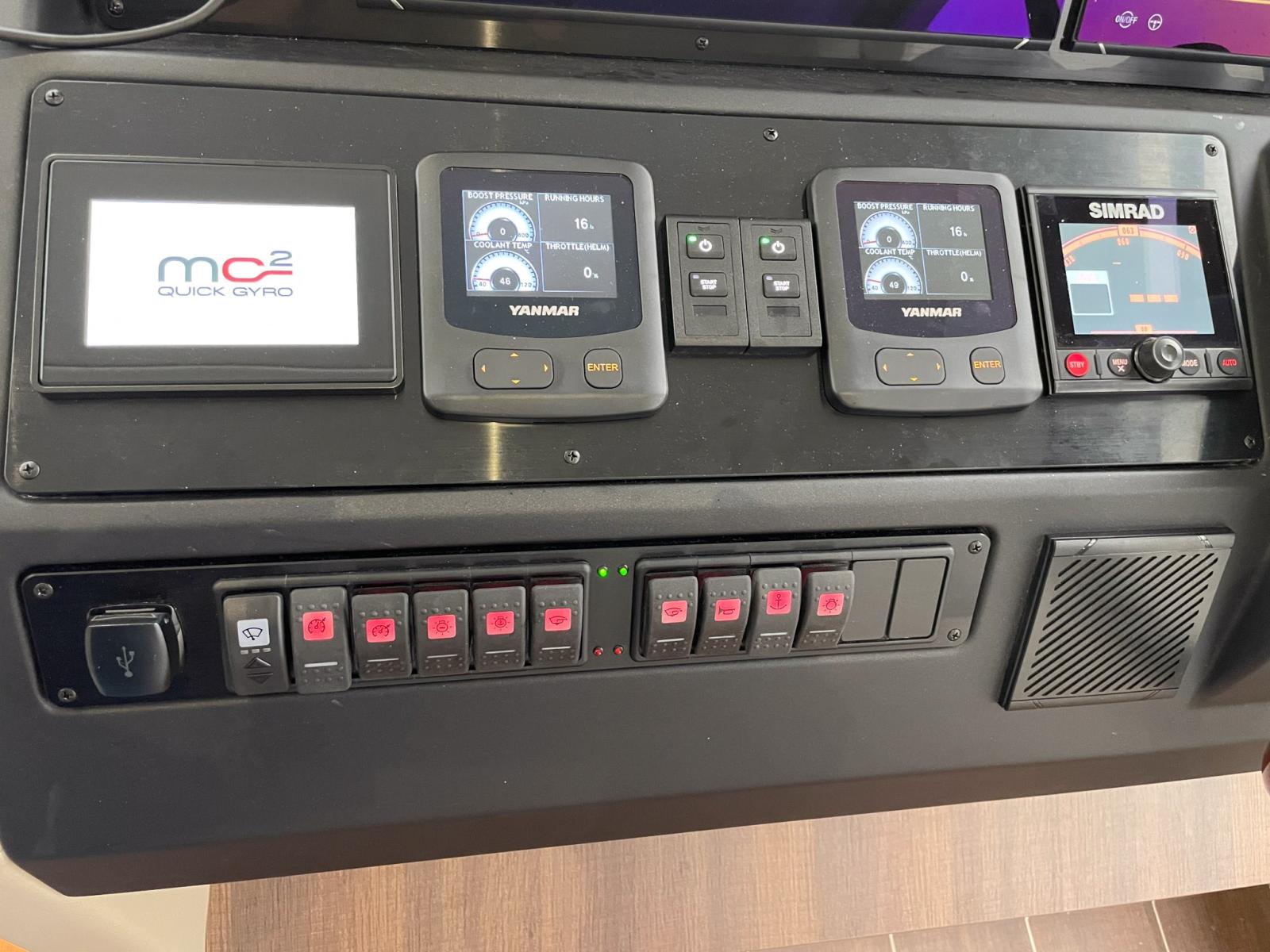Double Chartplotter SIMRAD NSO evo3S MPU DUAL 2x16" on the lower helm station - Chartplotter SIMRAD NSS evo3S 12" on the flybridge - Smart Transducer DST810, digital switching for 16 fuses, Autopilot SIMRAD AP44 VRF high capacity package - SIMRAD HALO20+ (doppler technology up to 36 nautical miles) - Radio SIMRAD RS100-B VHF with transmitter and AIS receiver + receiver and speaker on the fly