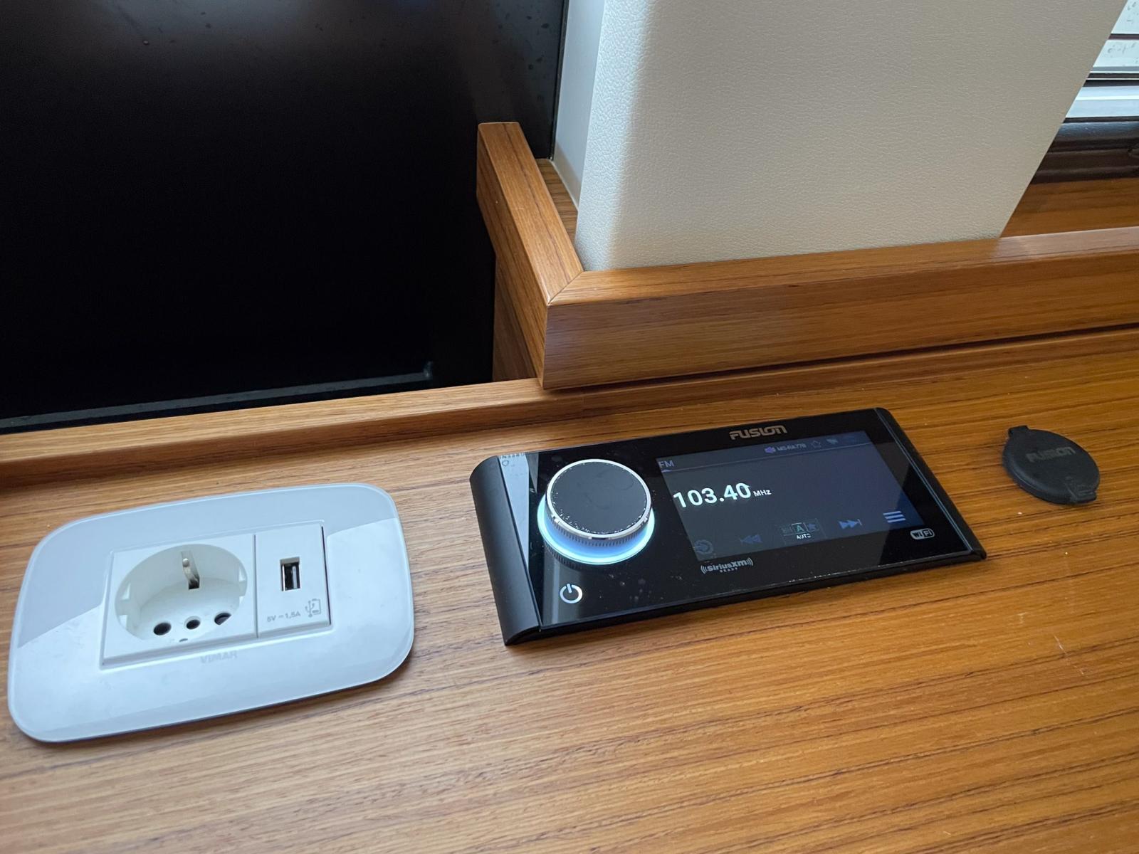 Fusion AUX/USBconnector." - FUSION 2-way waterproof speakers in cockpit - FUSION 2-way full-range speakers in saloon