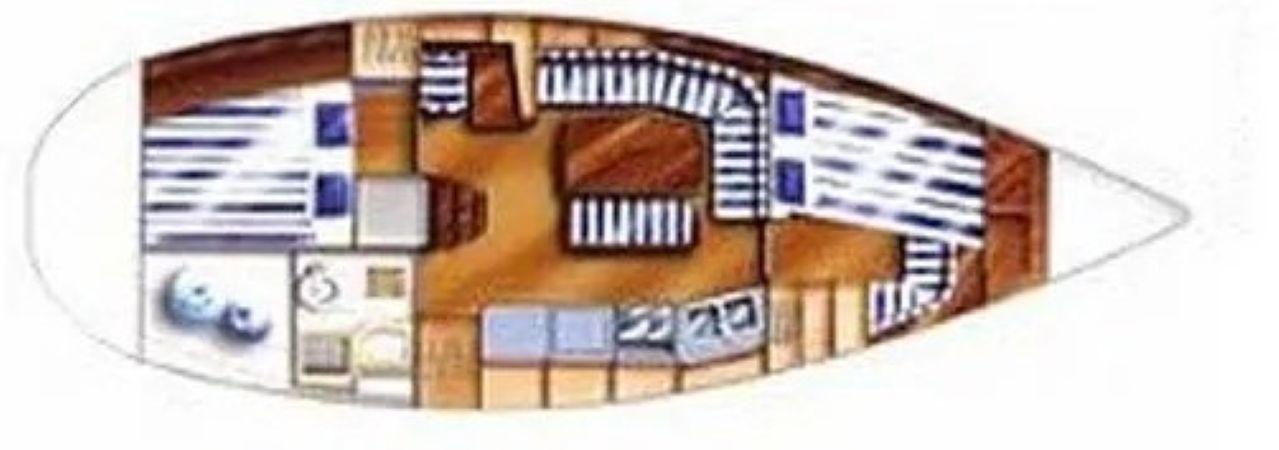 Designed for coastal and offshore cruising, this sailboat combines a spacious interior with a sleek silhouette and sturdy construction.