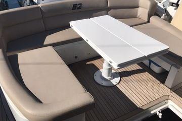 Engine Alarm, Bilge Alarm, Electric Engine Compartment Opening, Water pressure pump, Deck Shower, Tender Garage, Hard top, Underwater lights, Gangway, Platform, Teak deck, Teak Cockpit, Shorepower connector, Water harbor connector system, Electric Windlass, swimming ladder, cockpit table, Stern Winches.