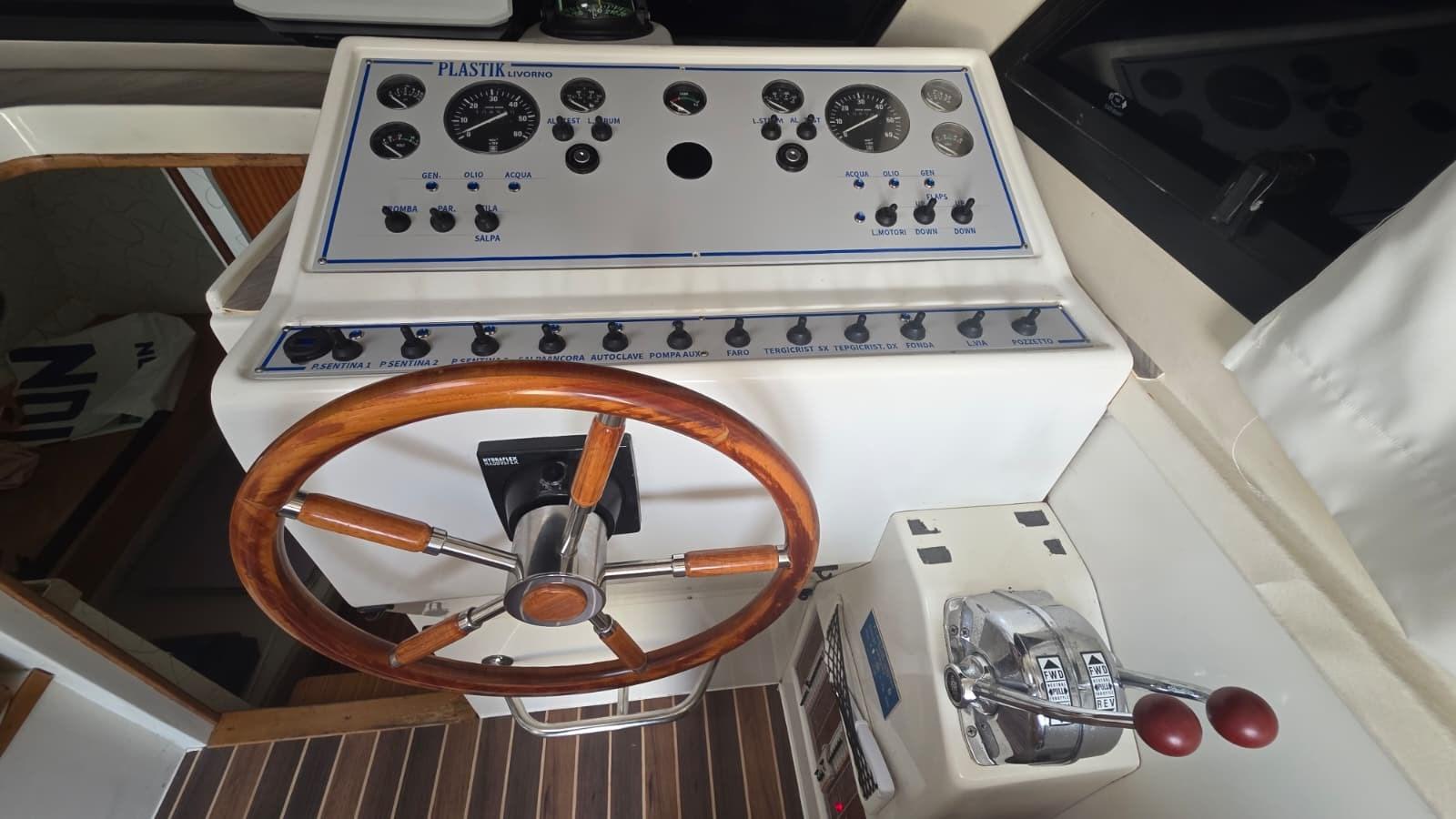 Water pressure pump, 3 Batteries, Deck Shower, Hydraulic Flaps, Platform, 3 Automatic Bilge Pump, Entry door, Shorepower connector, Electric Windlass (CON 30 MT DI CATENA), swimming ladder.