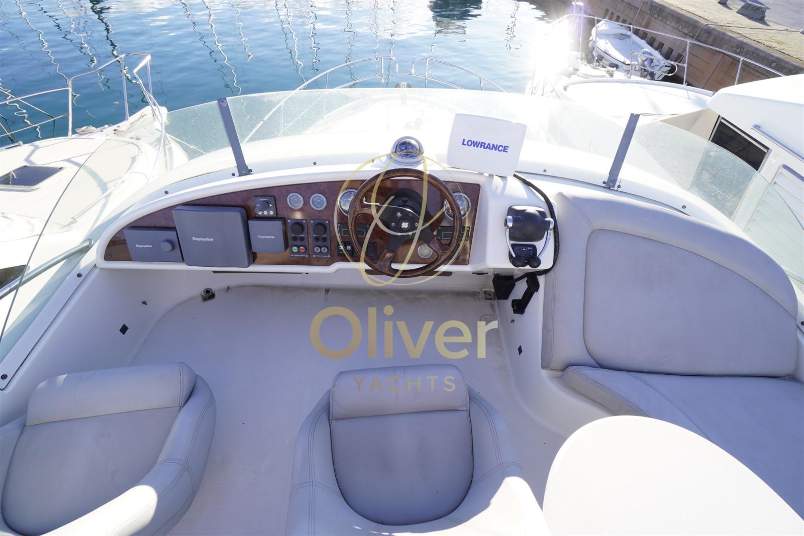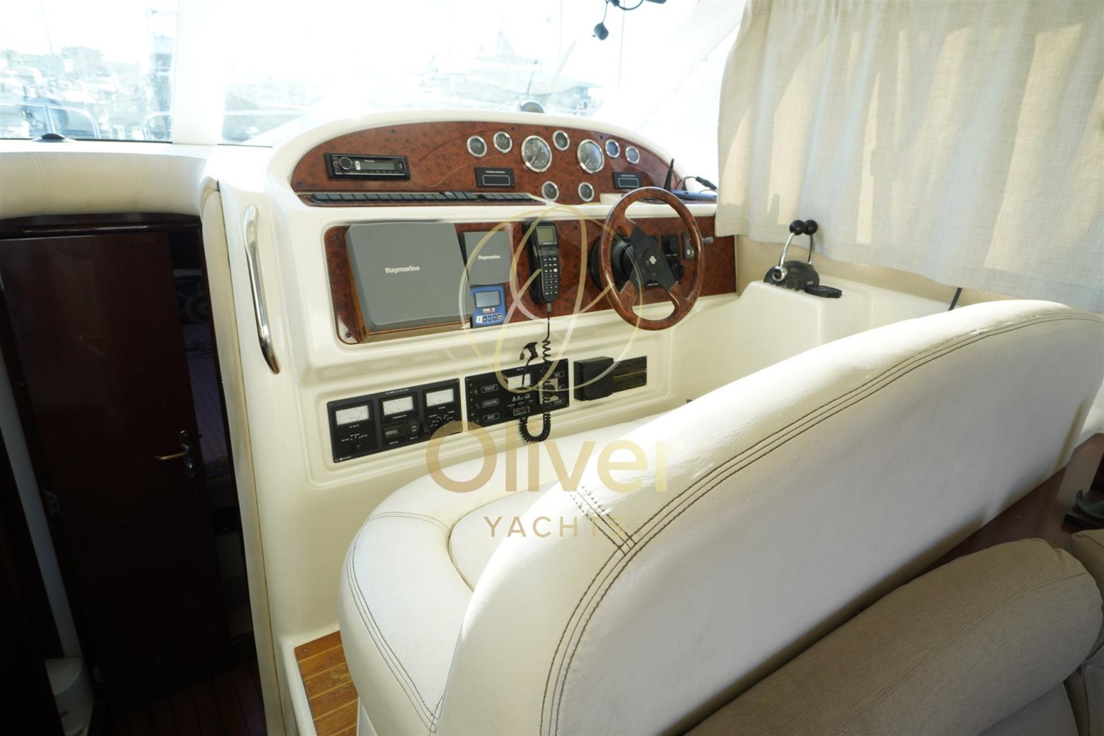 Fume/Gas Detector, Engine Alarm, Bilge Alarm, Alternator, Auto Dynamic Trim Interceptor, Water pressure pump, Shore power cable, Guard rail, Deck Shower, Twin Steering, Anchor mount, Electric Flaps, Fire Extinguishing System, Flaps Indicators, Anchor Chain Washdown, Washbasin in the cockpit, Courtesy Lights, Battery Monitor, Solar panels, Fenders, Gangway (IDRAULICA), Platform, Automatic Bilge Pump, Manual Bilge Pump, Teak deck, Entry door, Teak Cockpit, Shorepower connector, Water harbor connector system, Electronic instrumentation repeater, Electric Windlass, swimming ladder, Tender, Horn.
