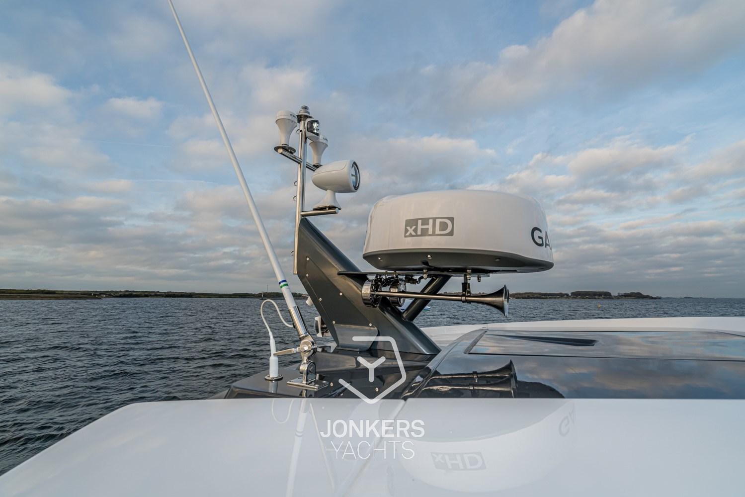 AIS (Garmin (sending/receiving)), Rudder angle indicator, Radar Antenna (Garmin GMR24 xHD Radome 4 Kw), Electronic engine control, Chain counter, chronometer, DSC vhf (Garmin), Depth Sounder (Garmin), Joystick (Volvo Penta IPS), Log (Garmin), Consumption monitor, Autopilot (Garmin), Chartplotter (Volvo GPSMap 8612V (12”)), Plotter with GPS antenna (Garmin), Control panel, Co-pilot seat, Yacht controller (Dockmate remote control).