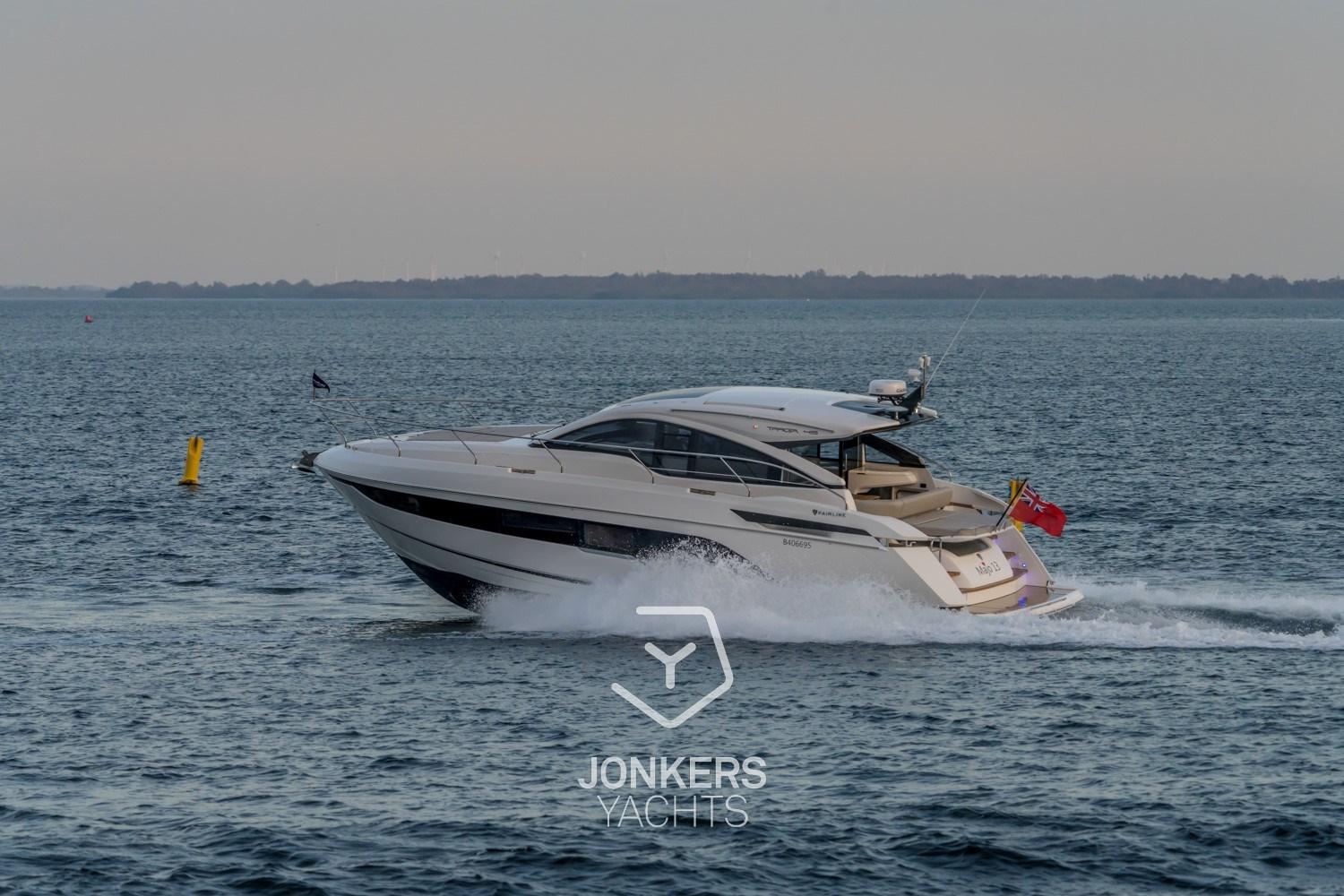 Fairline Targa 45 GT – Immaculate, Fully Optioned & Dealer Maintained! Delivered in October 2021, this stunning Fairline Targa 45 GT comes from her first owner and has only approx. 380 engine hours. Every winter she has been stored indoors in a heated facility and professionally maintained by us as official Fairline dealer, ensuring a truly worry-free ownership history. Exceptionally well specified, she features extensive Garmin navigation, bow thruster, Dockmate remote control, high-capacity air conditioning, Eberspächer heating throughout, hydraulic tender garage, premium audio-visual systems, refined interior finishes, and elegant Esthec decking. The perfect balance of performance, comfort and timeless Fairline design. Turn-key, beautifully presented and ready for immediate cruising.