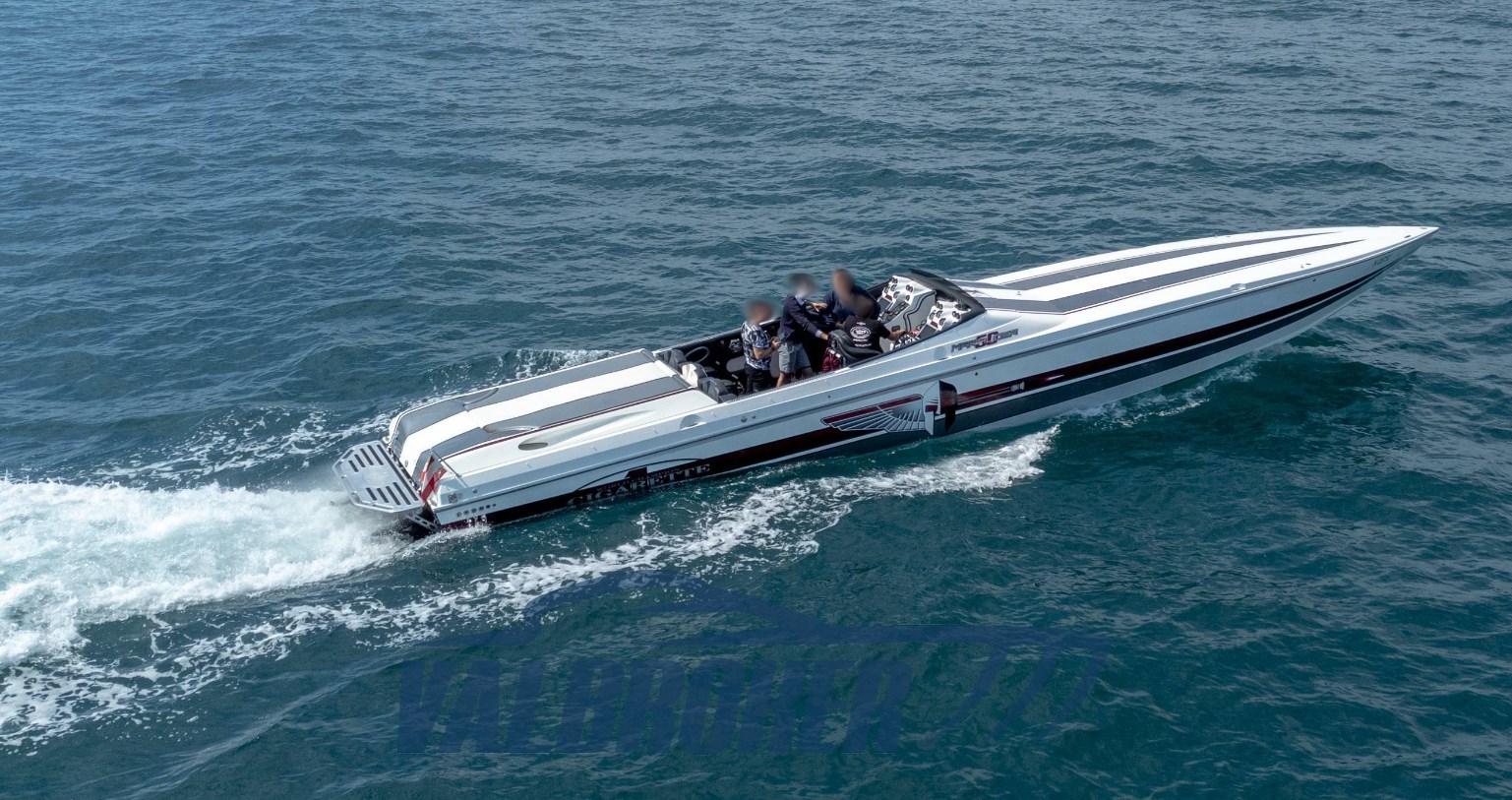 Fantastic example of Cigarette Racing Team 50' Marauder. Registered in Italy since 2023, it is in impeccable condition and is currently stored in the showroom in the Upper Adriatic. Exceptional performance, unique and unobtainable boat.