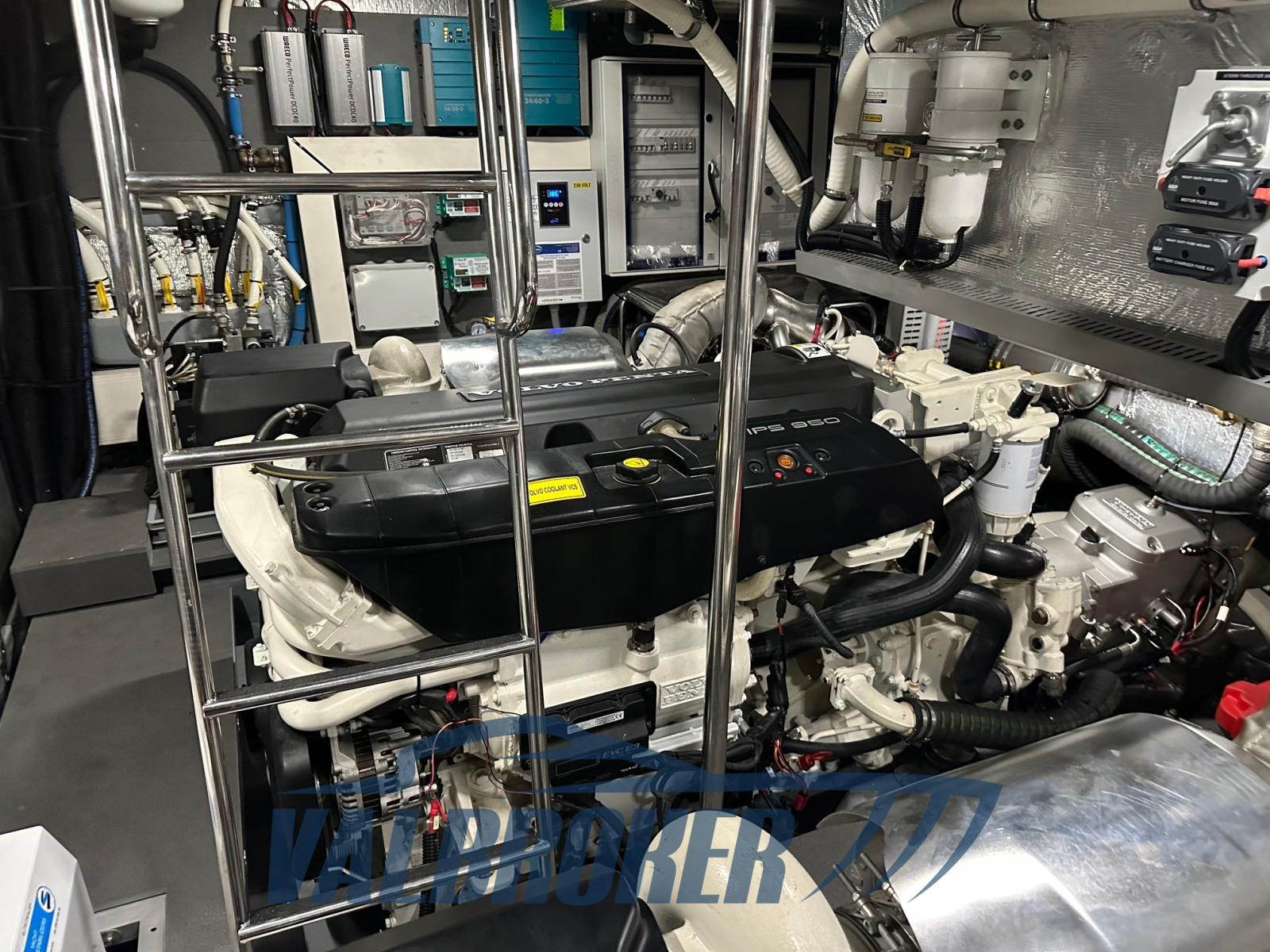 Watertight door for direct access to the engine room from the fourth aft cabin or aft glove box, solid teak steps, Volvo interceptor flaps, third cockpit control station