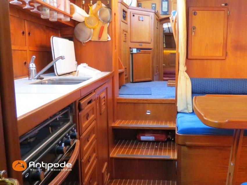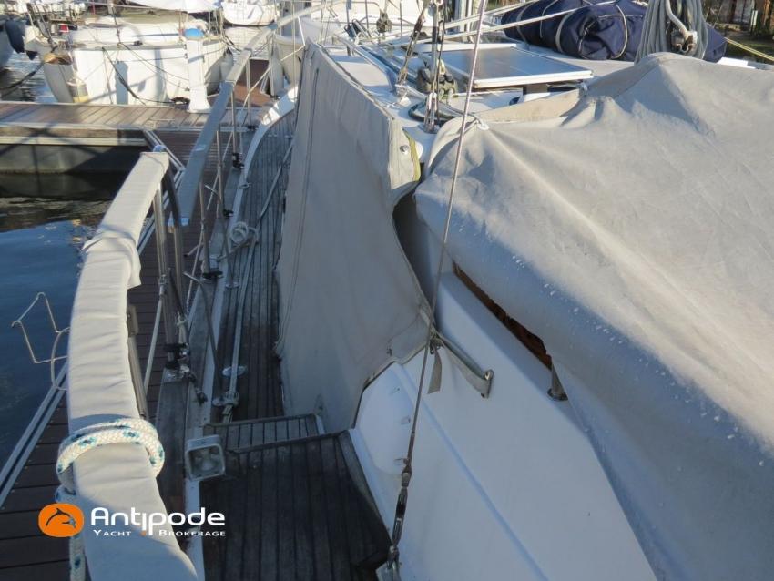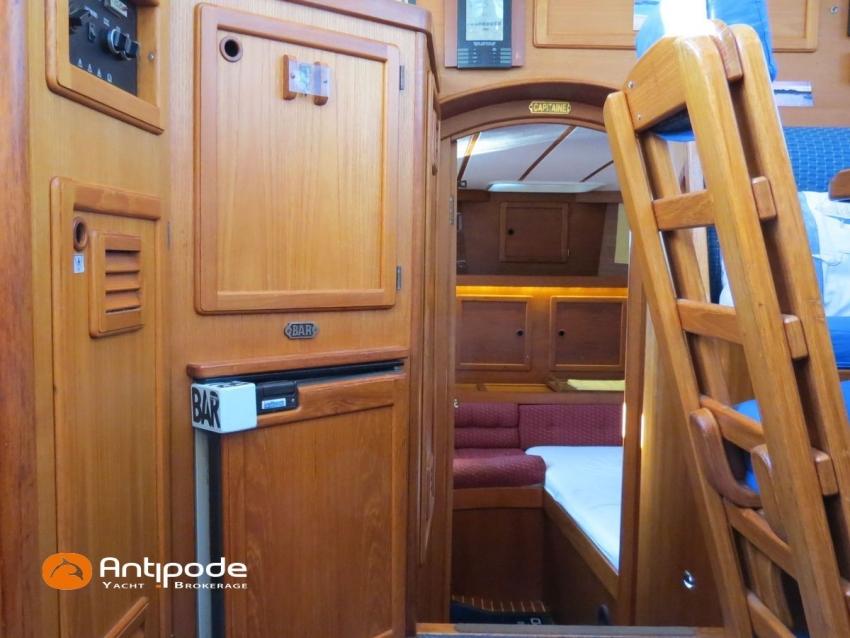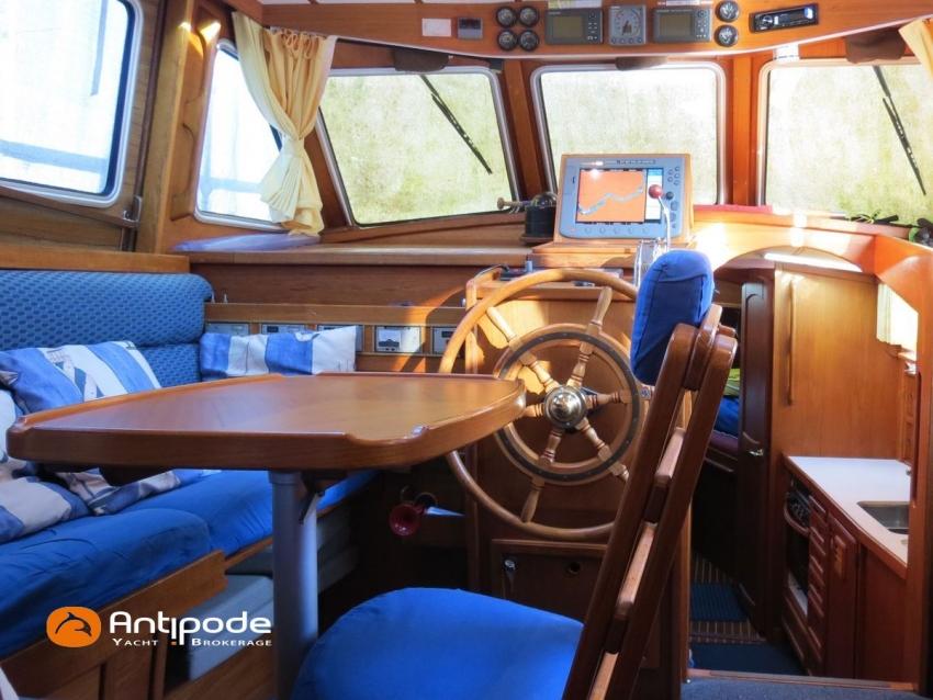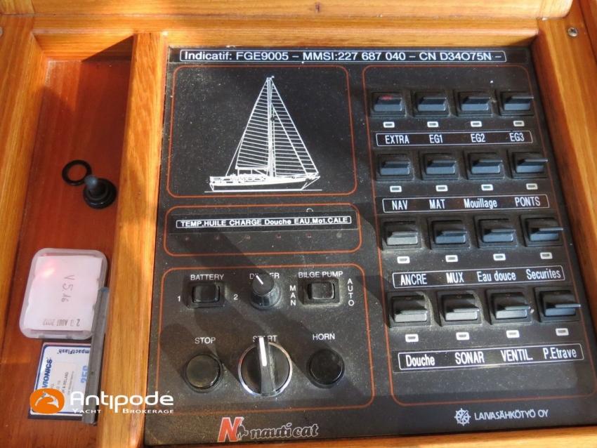 NAUTICAT 331, 2006, YANMAR 4JH4TE, 75 hp (2572 hrs), Bow thruster, Interior layout version 1 forward cabin, 1 aft cabin, 1 heads (toilets + shower), Varnished floorboards & carpet, Saloon table convertible in double bed, Electric manoeuvring winch handle - Ewincher (2020), Retractable and removable aluminium bowsprit (2021), Stern pulpit deck support, Aft stainless steel platform, Aluminium toerail, Cockpit table (teak), Wheel steering system, Wheel steering in wheelhouse, Winter covering for cockpit (2022), Cockpit cushions (2022), Electric windlass - Lofrans 1000W (engine renewed in 2020), Wheelhouse electric windlass remote control, Windscreen covers (2023), Deck stepped furling mast, Spanker mast, Classic standard main sail on spanker mast, Furlable main sail on main mast (serviced in 2024), Genoa roller furling with above deck drum - Furlex 200S, Furling genoa (serviced and new UV protection in 2020), Furlable asymetric spinnaker & Selden GX15 furler (2021), Raymarine in board autopilot, Raymarine ST 60 navigation system, Raymarine ST 60 cockpit repeaters, Raymarine ST 60 wheelhouse station repeaters, GPS and chartplotter (wheel pupitre station) - Raymarine C120, Radar with radome radar fitted on mast - Raymarine, AIS receiver, DSC VHF at wheelhouse station - Icom M323G, Handheld VHF, Television (saloon), DVD player, Fridge unit 12 V (top opening door), Second fridge units 12 V (front opening door), Hot and cold pressurized water, 3 burners cooker + oven, 220 V shore power + battery charger, AGM Service batteries - 2 x 160Ah (2020), WEBASTO heating system - Air Top Evo 5500 (new burner 2021), Holding tank, Electric toilets (2021), Solar panels, Hot and cold cockpit shower, Leds navigation lights, Leds interior lights, Liferaft - Seasafe 6 men from 2014 (next service date Feb. 2027), 16 kg Fob anchor + 50m lenght of chain, Second anchor + chain, Fenders and warps, Dinghy AX3 Bombard, Temo electrical outboard engine (2020), Located Brittany. For more information or to make an appointment for a visit, contact : Jean-Baptiste Lemaire +33 6 10 25 00 03 - jb@antipode-yachts.com