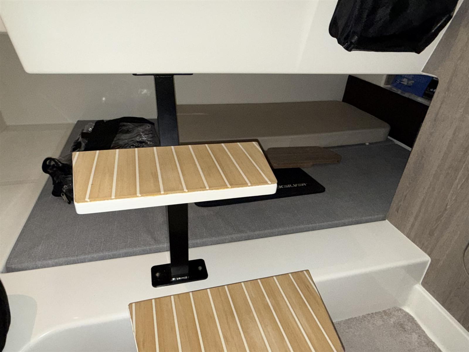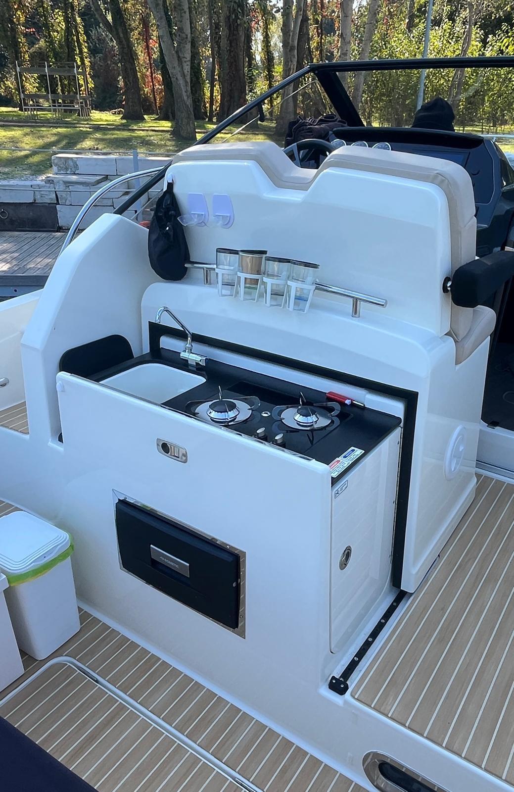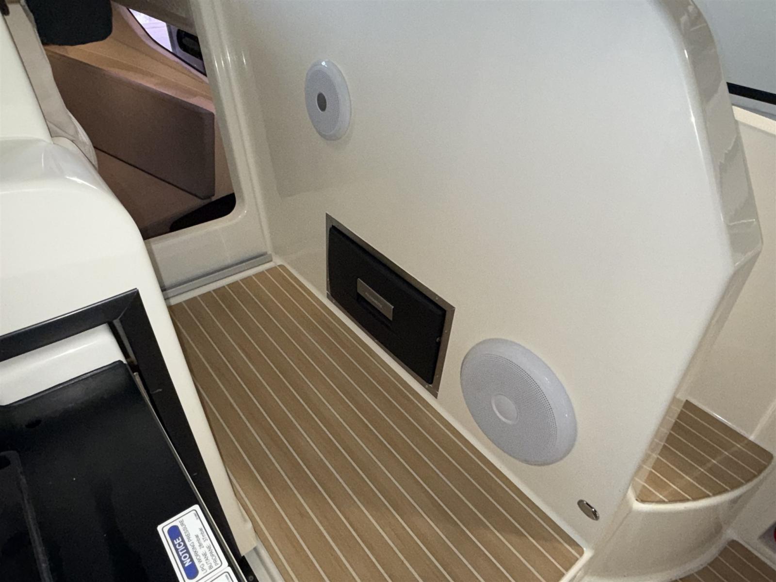 Engine Alarm, Water pressure pump, Shore power cable, Deck Shower, Electric Flaps, Flaps Indicators, Washbasin in the cockpit, Courtesy Lights, Fenders, Teak Cockpit (Flexiteek), Shorepower connector, Water harbor connector system, Electric Windlass, swimming ladder, cockpit table, Horn.