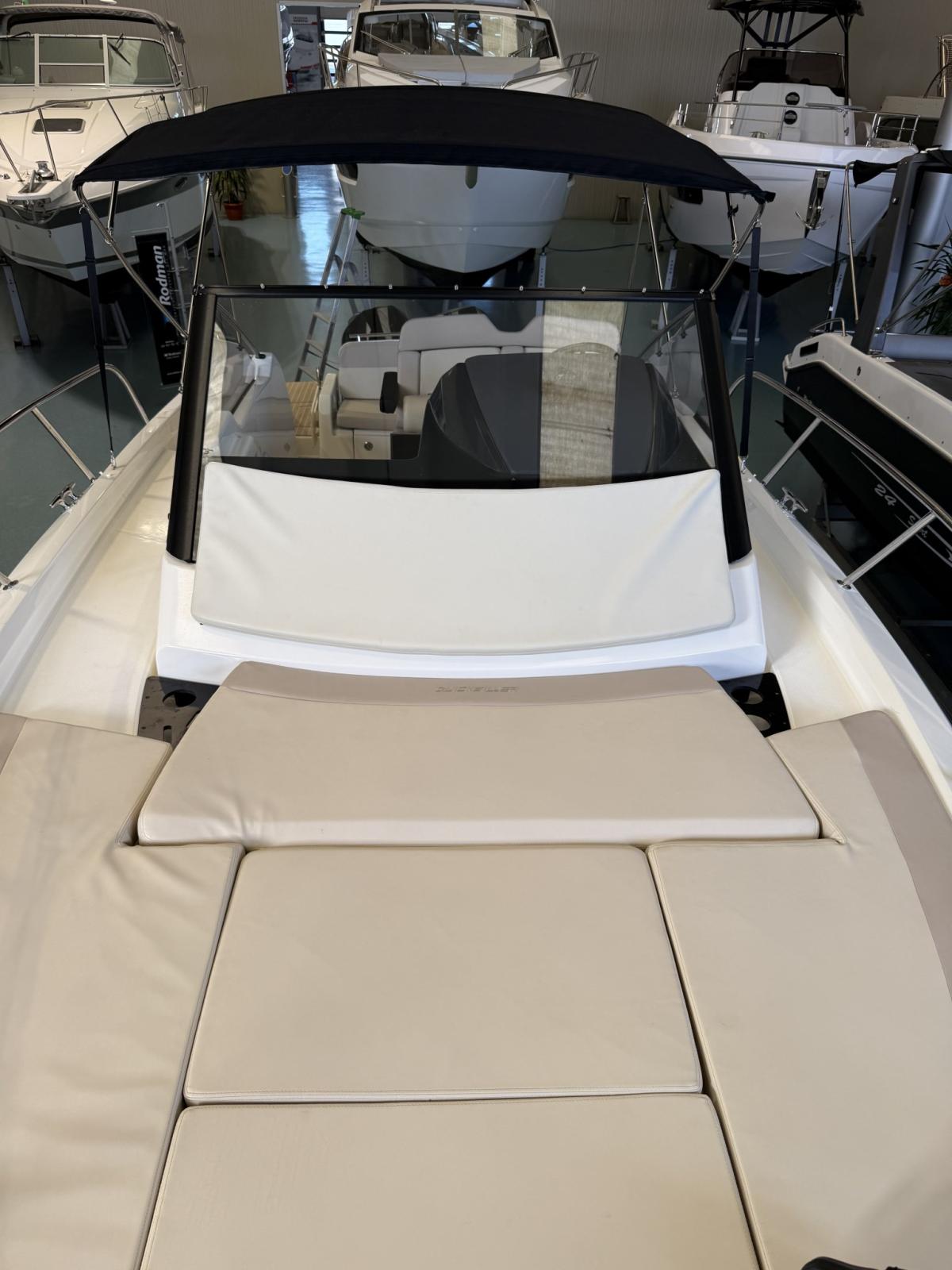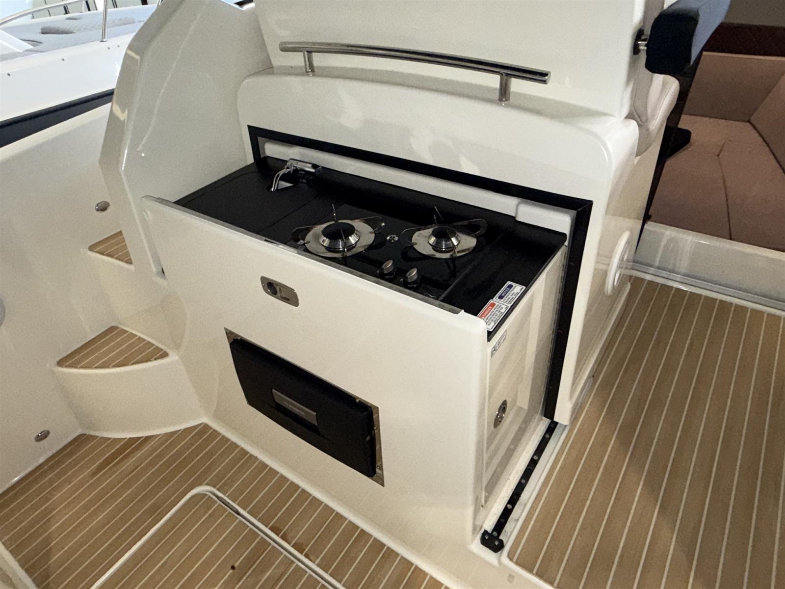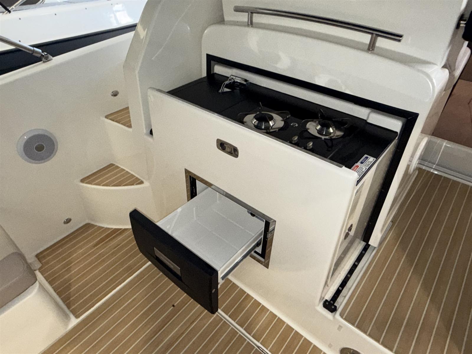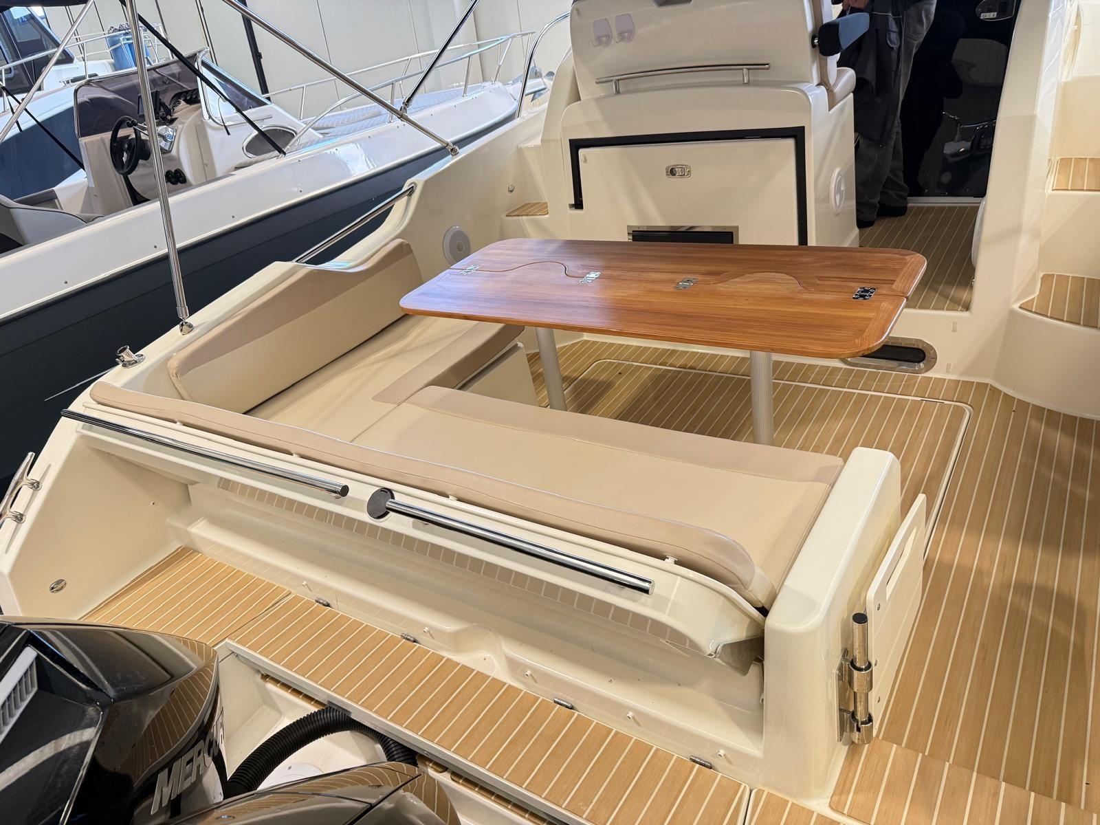 Engine Alarm, Water pressure pump, Shore power cable, Deck Shower, Electric Flaps, Flaps Indicators, Washbasin in the cockpit, Courtesy Lights, Fenders, Teak Cockpit (Flexiteek), Shorepower connector, Water harbor connector system, Electric Windlass, swimming ladder, cockpit table, Horn.