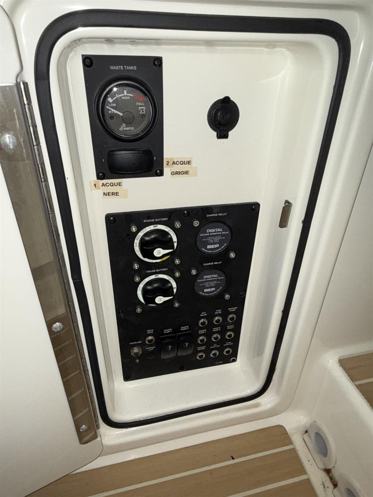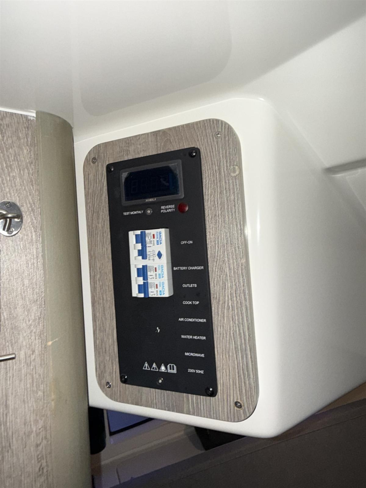 Fuel Tank Indicator, Water Tank Meter, 12V Outlets, 220V Outlets, Black Water Tank, Electric Toilet.