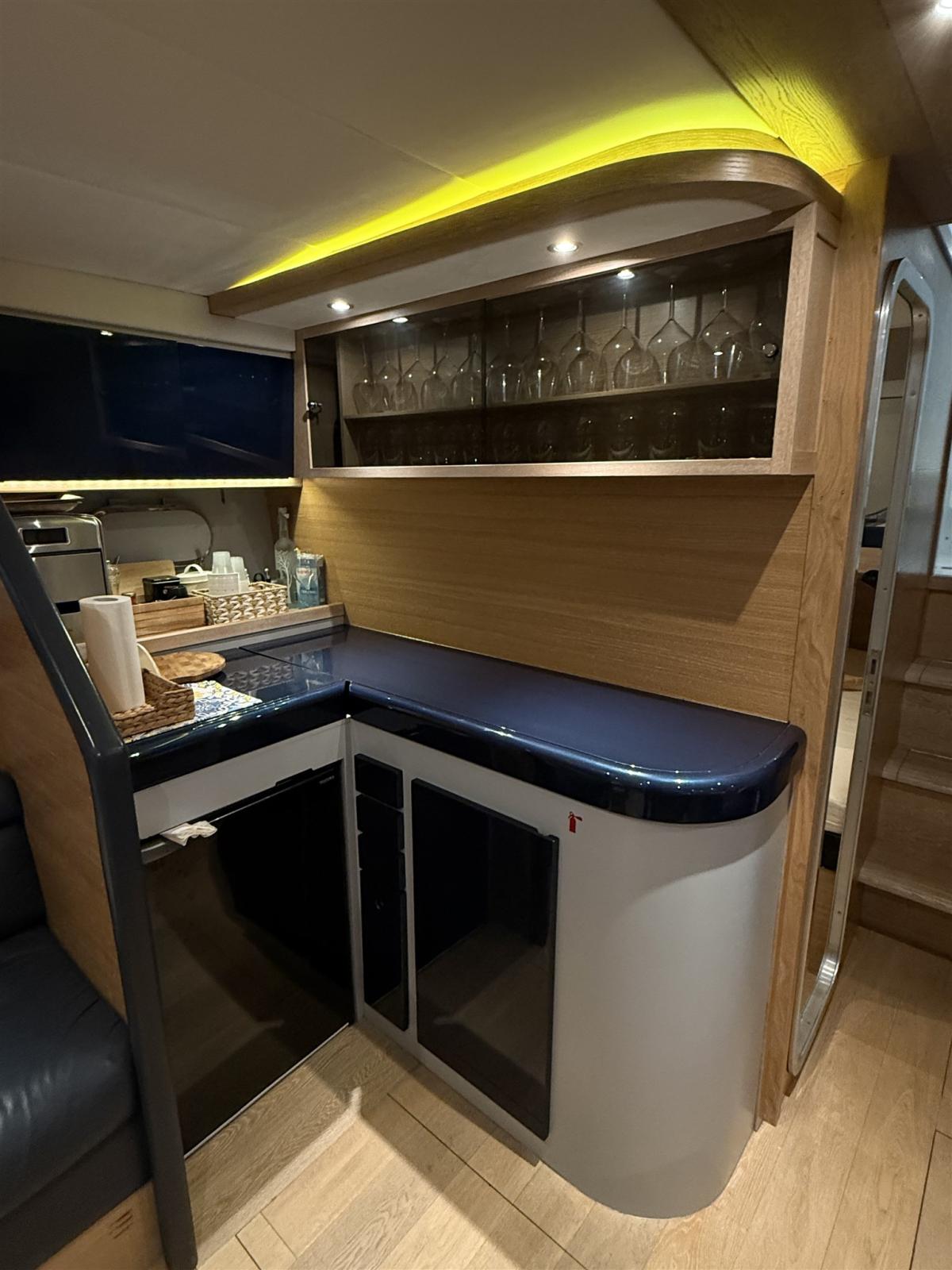 Electric Engine Compartment Opening, Water pressure pump, Shore power cable, Hydraulic Flaps, Hard top, Washbasin in the cockpit, Courtesy Lights, Gangway, Shorepower connector, Electric Windlass, swimming ladder, cockpit table, Horn.