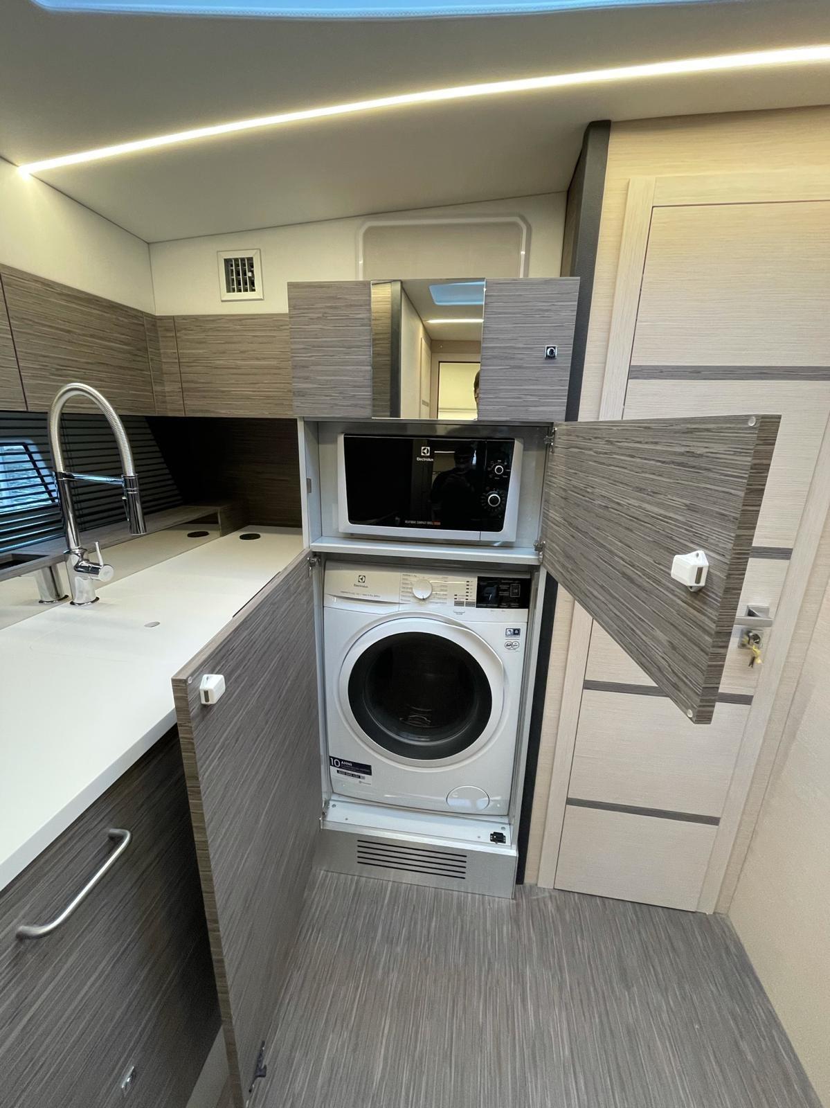 2 Galley (interna ed esterna), Deck Refrigerator, ICE Maker (con dispenser acqua separato), Washer dryer (8 kg), Dishwasher (inclusa nel kit service room), Electric hot plate, Winecooler.