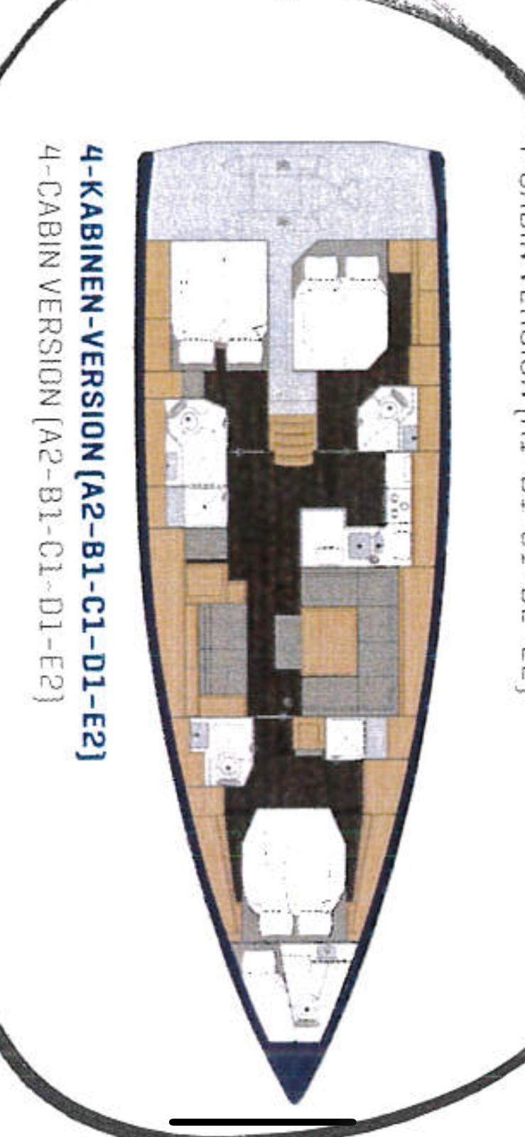 containers for ropes in the wheelhouse, cabin fabric upholstery, cabin bed fabric panels, leather-covered handrails, reading lights with USB socket, digital system with 9' display in dientte with GPS function, sail ready Pack Style, gas cylinder compartment, 2 aerators on the hatch, mooring kit, dientte adjustable dinette ambient lights and cabins, cooker hood in the kitchen, entertainment Package, electronic Navigation "Advance Packing", propeller with 3 folding blades, steering wheel in white and black composite, side guard opening, teak on the sidedeck, sprayhood with handrail, wooden interior, kitchen top in "Crispy Milk", 2 aluminium cleats for half a boat, stainless steel bow protection, Elvstrom mainsail, Elvstrom code D, lights under the spreaders, composite bowsprit, 2 x Electric Halyard Winches Size 55