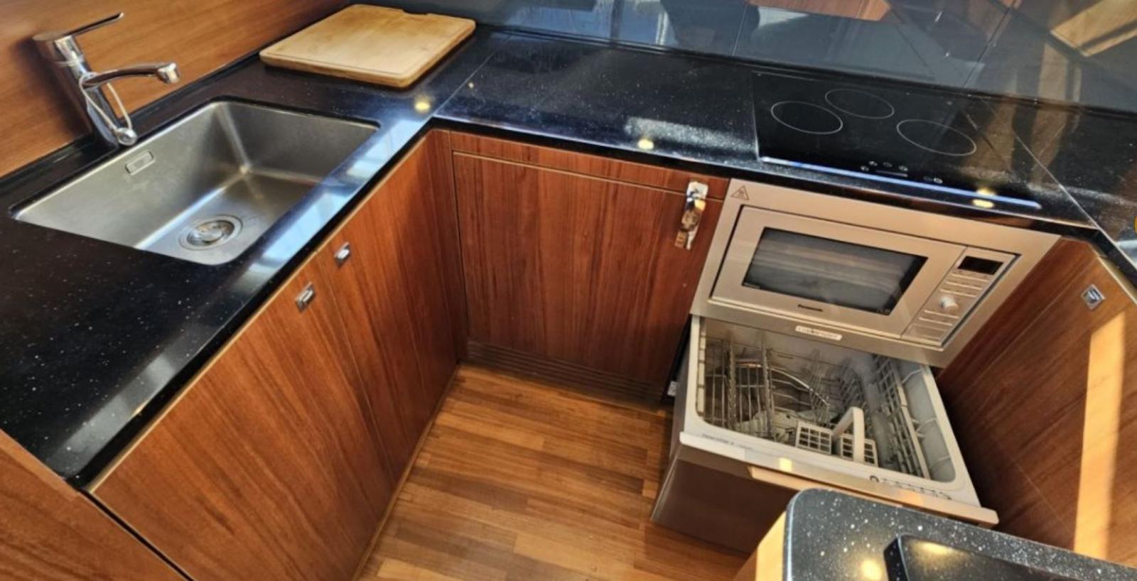 Galley, Burner, Deck Refrigerator, ICE Maker, Washer dryer, Dishwasher, Ceramic hot plate.
