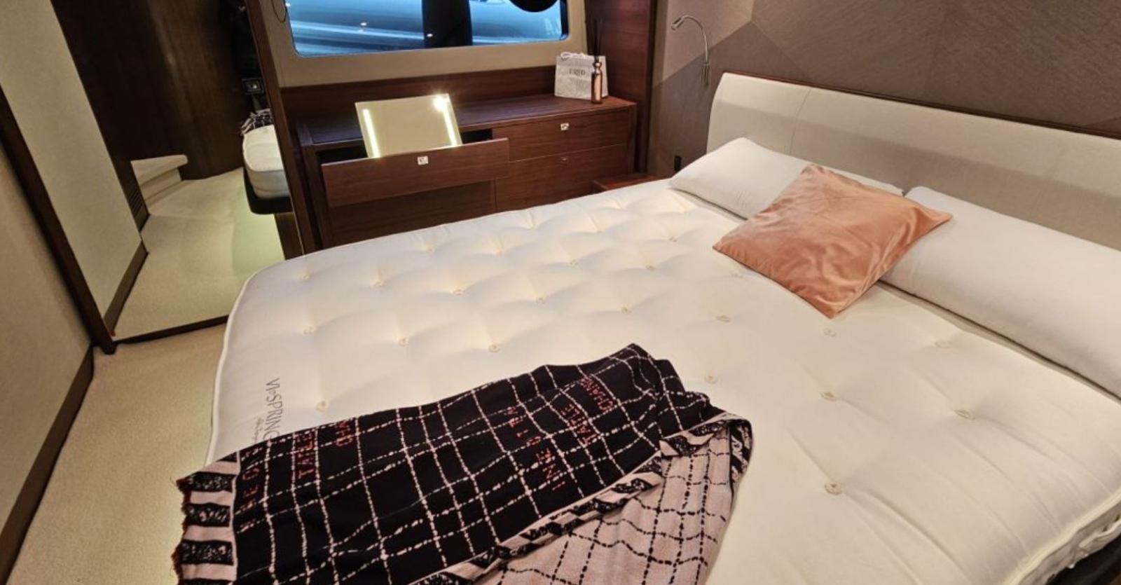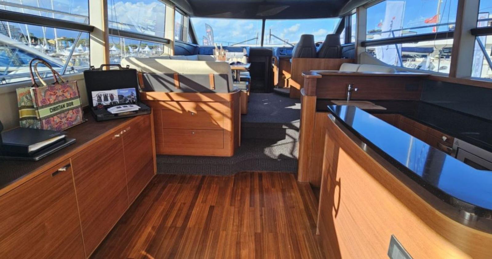 Fully equipped with hydraulic stern platform, a majestic flybridge worthy of a 65 footer, air conditioning, generator, flaps, joystick, bow thruster, autopilot, GPS/depth sounder... teak cockpit, camper awning and much more...