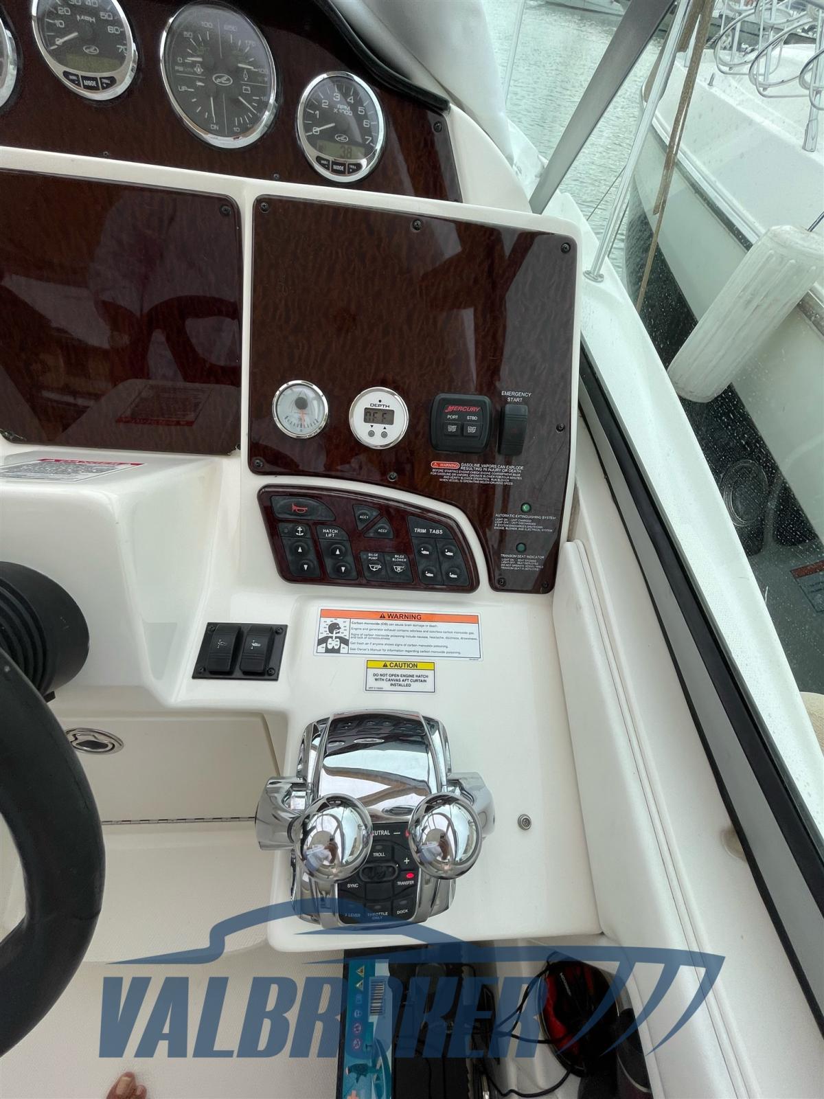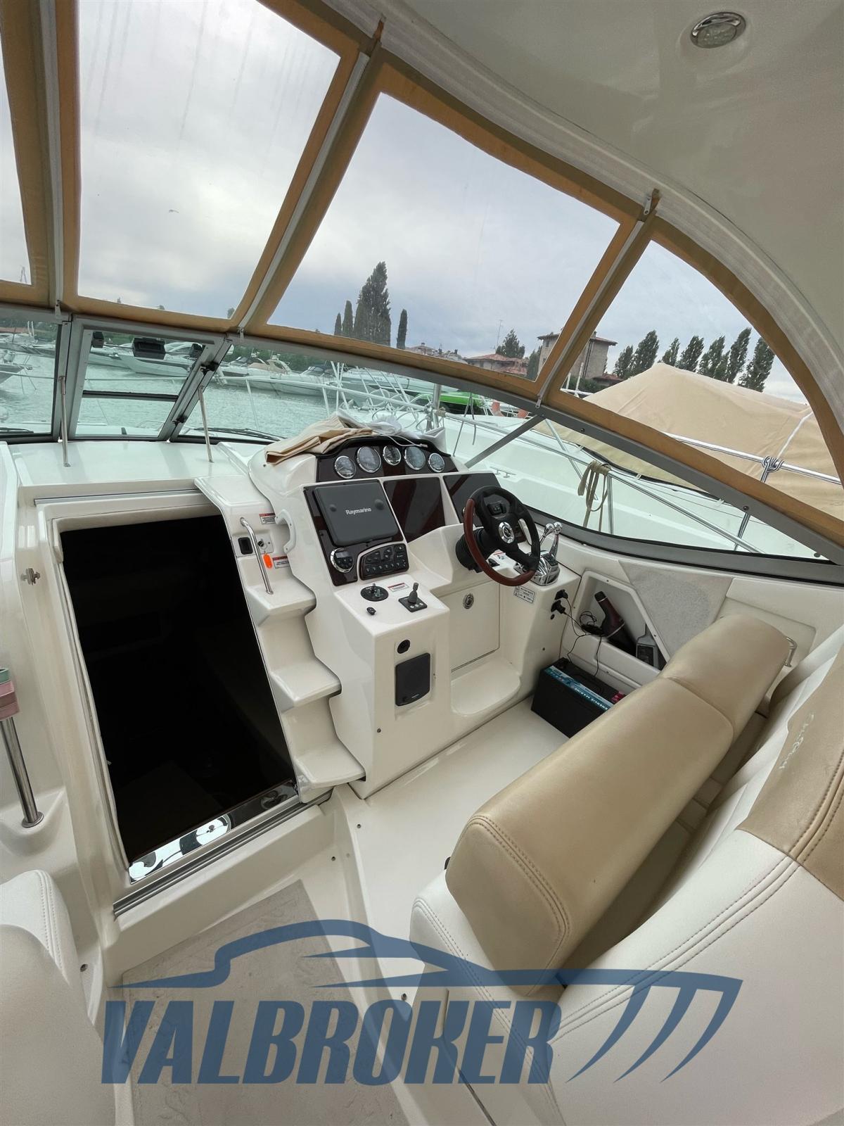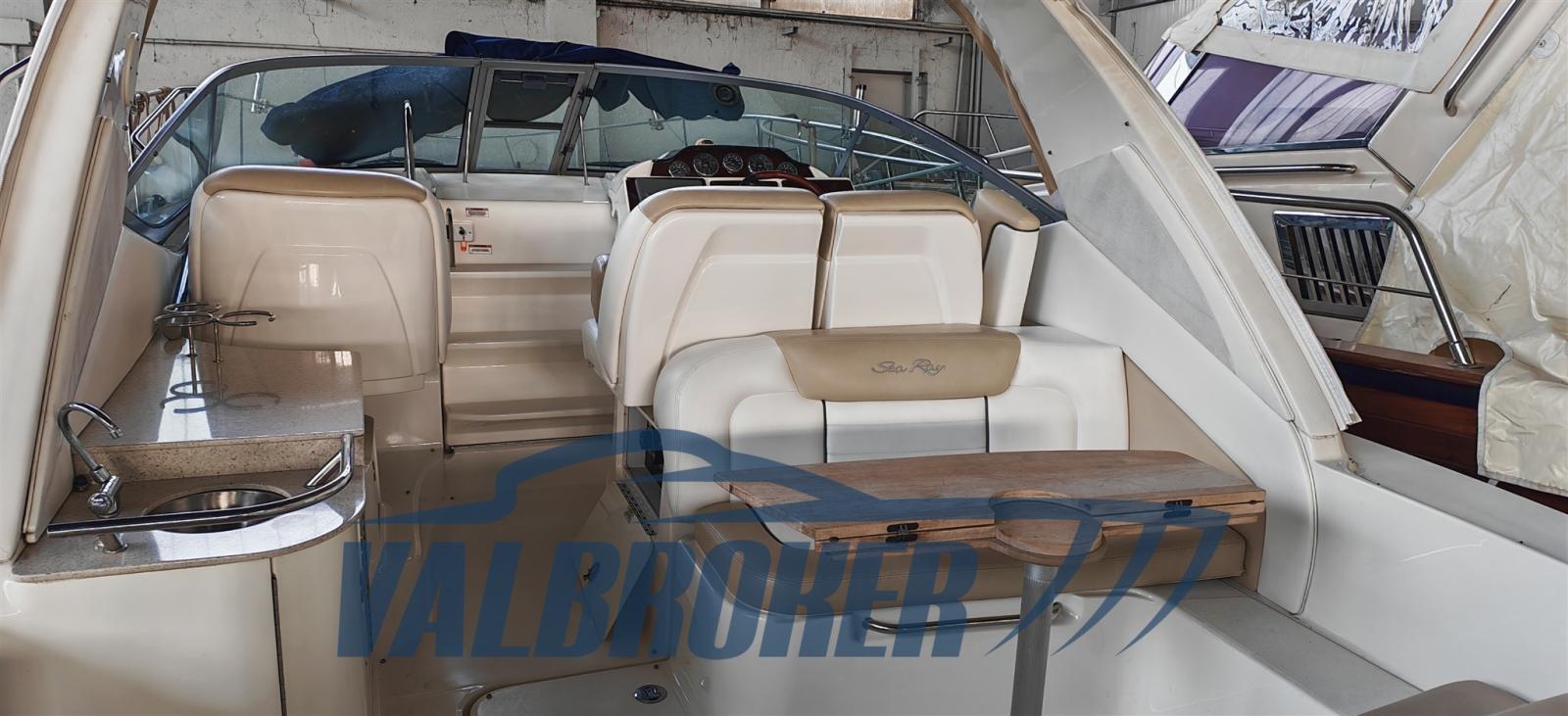 Great build quality from the important American shipyard Sea Ray. Solid, robust and well-structured hull for all weather conditions. Boat in excellent condition, it has always and only sailed in fresh water on Lake Garda. Powered by 2x325HP V8 Mercruiser 6.2 Bravo III with only 250 hours of motoring!! Model year 2008. Indoor storage every winter. Bow thruster, hot/cold air conditioning. Convenient opening compartment with sofa on the aft platform. Original Sea Ray two-tone cushions in excellent condition.