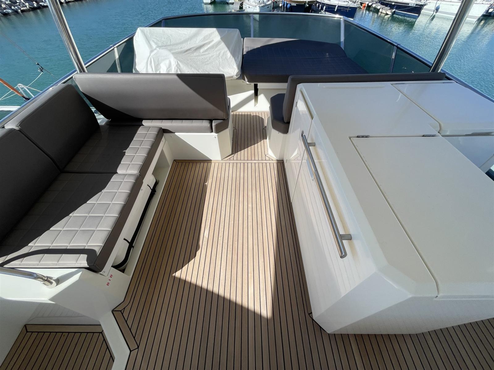 Flybridge: Teak, 2 fridges 2024, Table cushions 2025, Electric roof