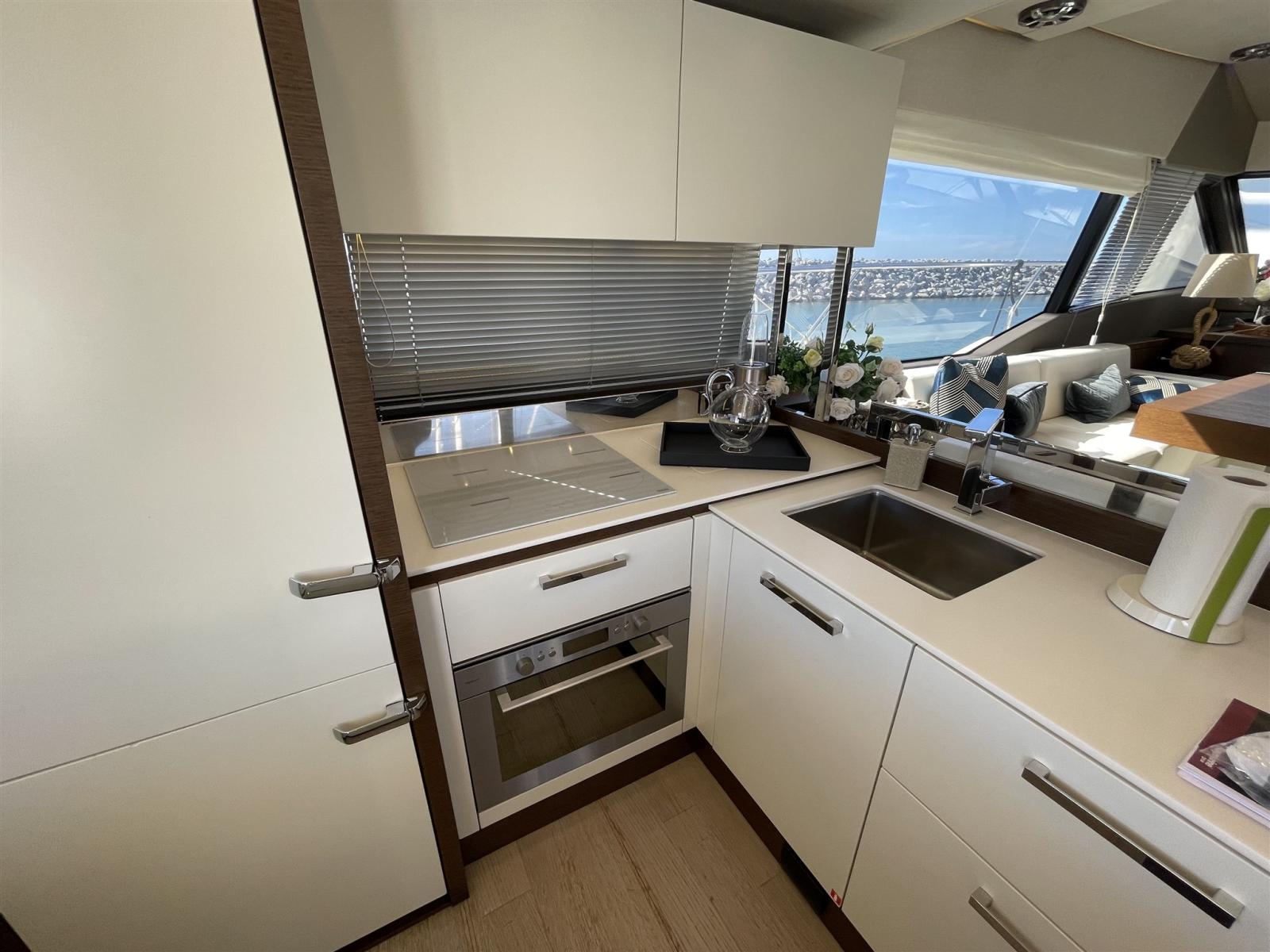 Galley, Deck Refrigerator, 2 Refrigerator (Figo vini e frigo XL cucina 2025), ICE Maker (Sul Fly), Washer dryer (2023), Dishwasher, Washer (2023), Coffee Machine, Ceramic hot plate (bianca), Winecooler.