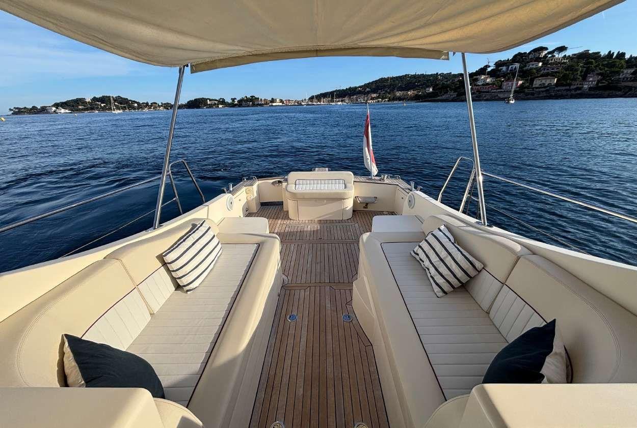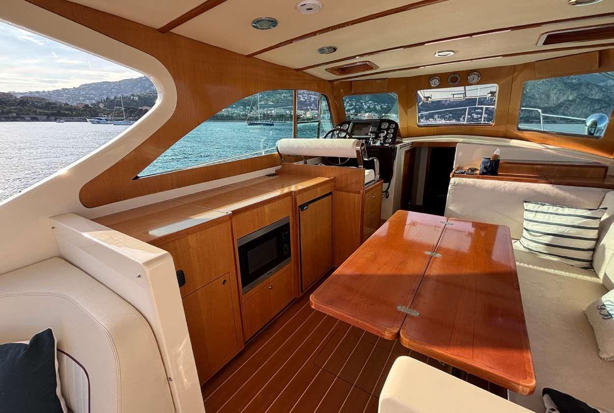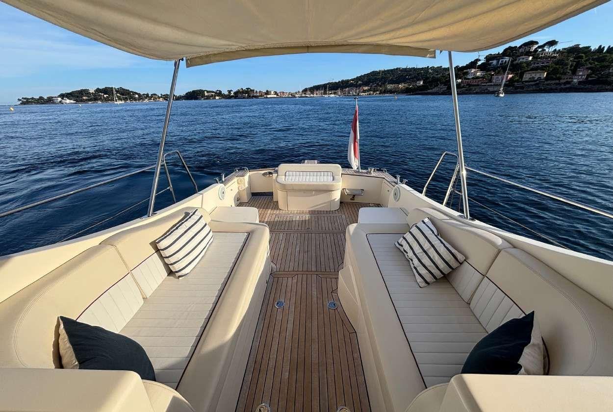 Only one owner Never chartered Engines services and antifouling June 2025 Two cabins Two bathrooms Generator Air conditioning Fusion music system Bow thruster GPS / Auto-pilot / VHF Flaps 3 Fridges Microwave Hydraulic passerelle Big sunbeds All varnish in perfect condition Turn keys condition