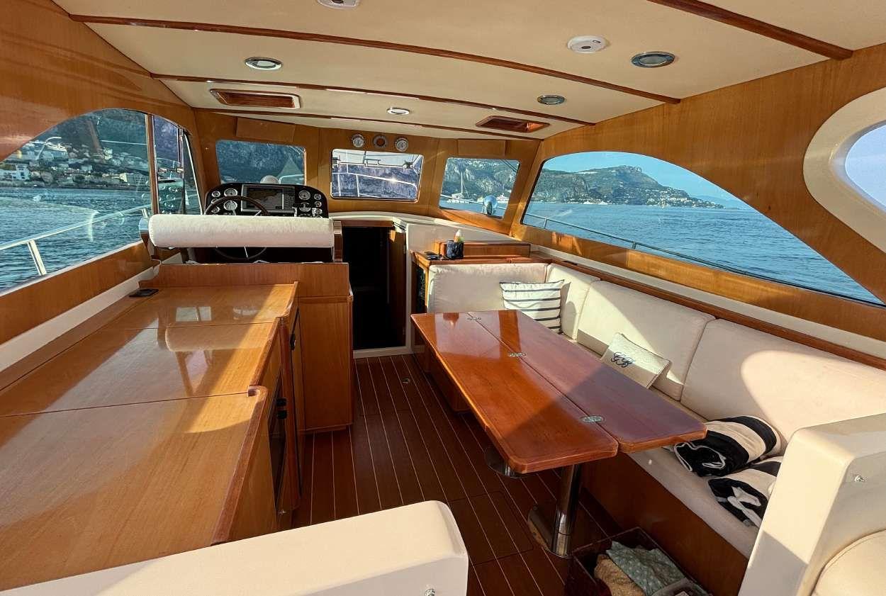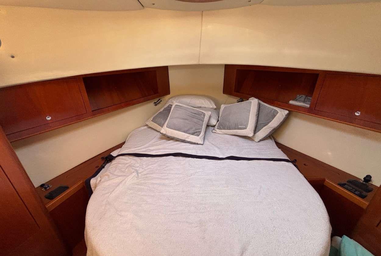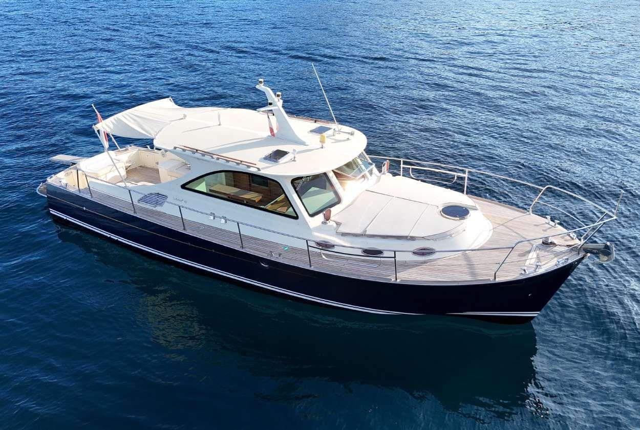 Only one owner Never chartered Engines services and antifouling June 2025 Two cabins Two bathrooms Generator Air conditioning Fusion music system Bow thruster GPS / Auto-pilot / VHF Flaps 3 Fridges Microwave Hydraulic passerelle Big sunbeds All varnish in perfect condition Turn keys condition
