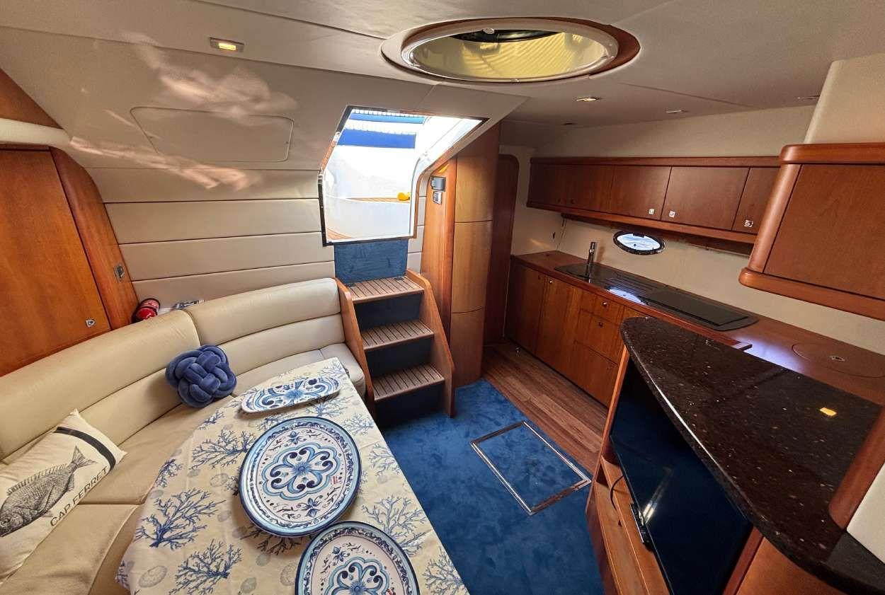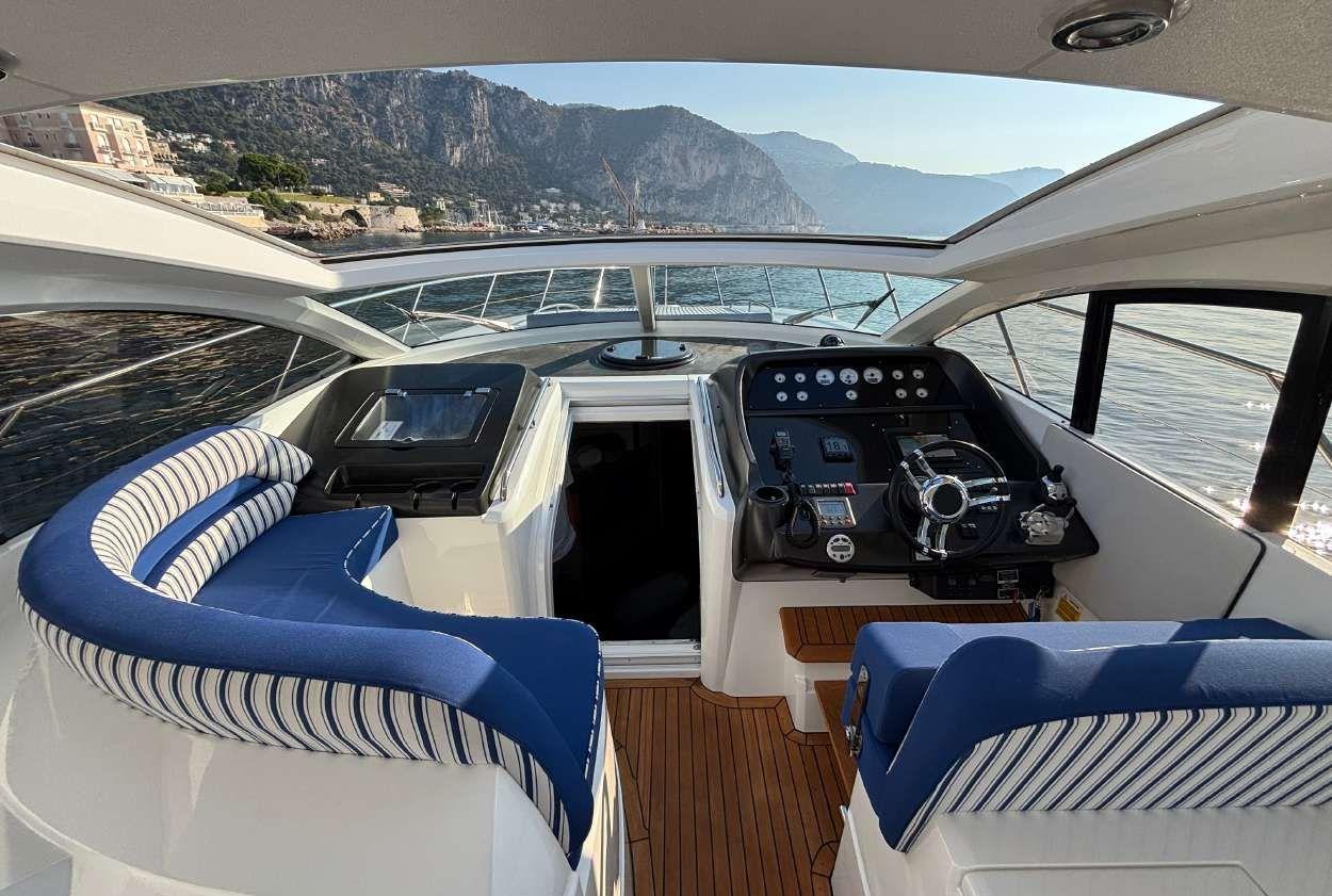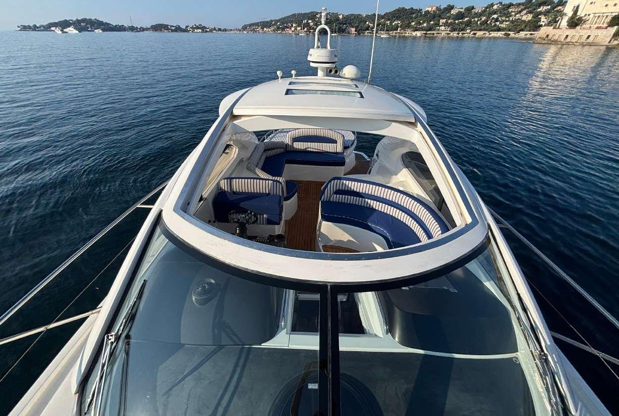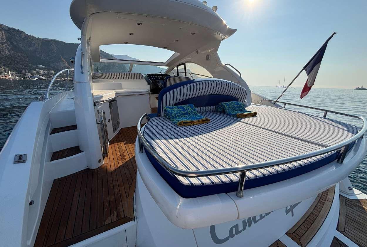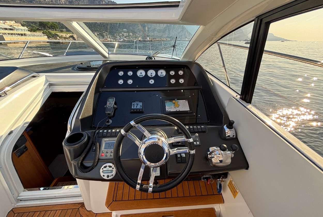 Electric hard top Never chartered Antifouling May 2025 Two cabins Two bathrooms Generator Kohler 6.5 KV with 500 hours Air conditioning Bow thruster GPS / Auto-pilot / VHF Flaps 2 Fridges Hydraulic passerelle Hydraulic swimming platform Two big sunbeds IPS Joystick New upholstery