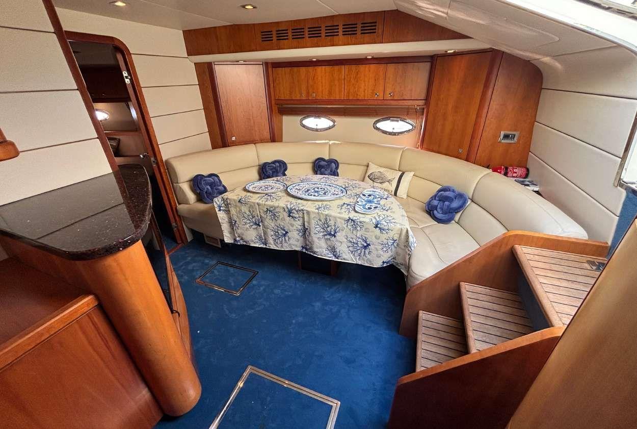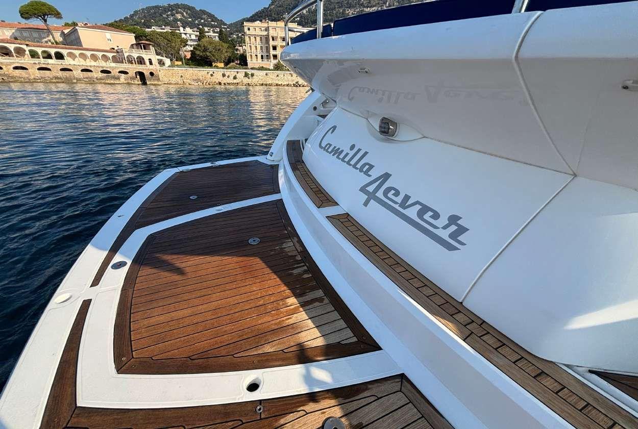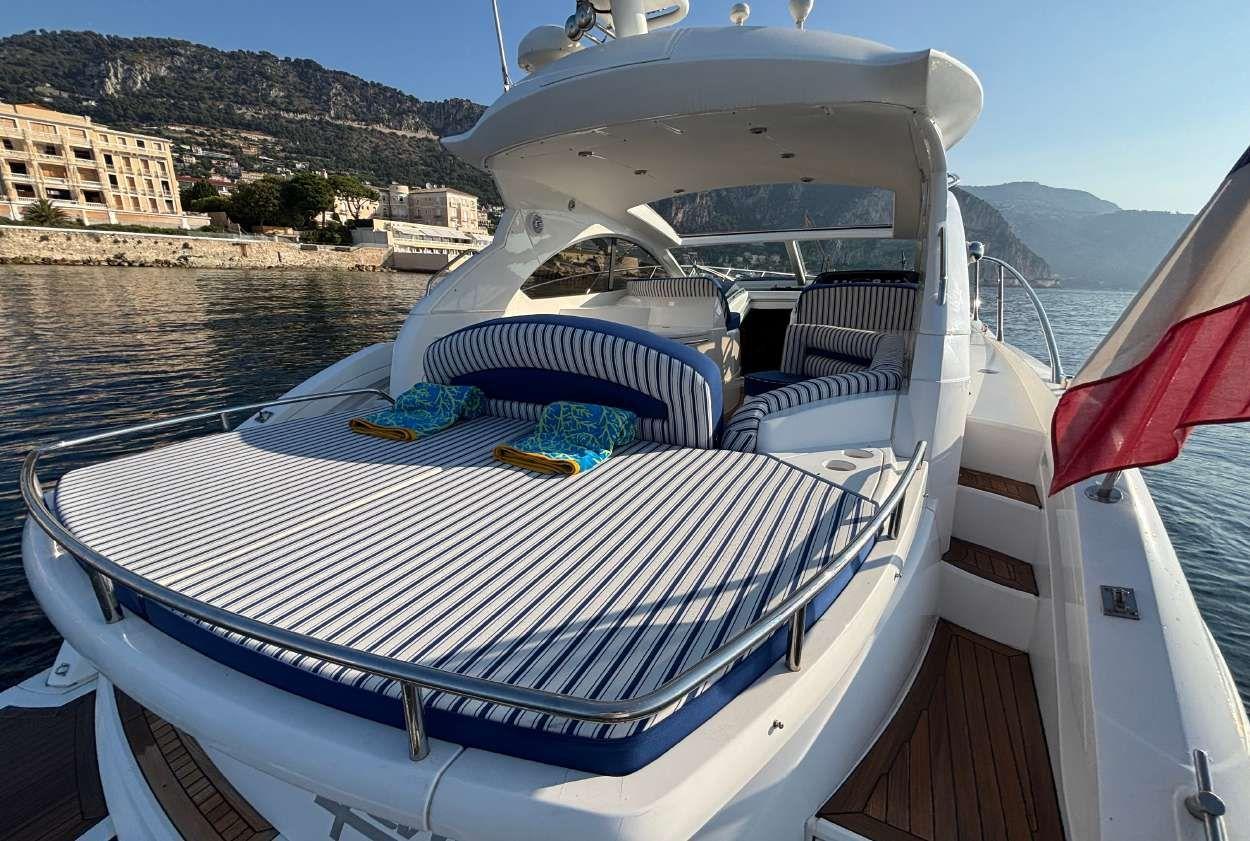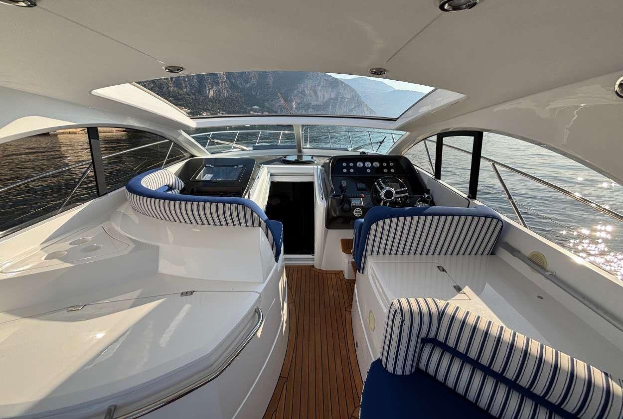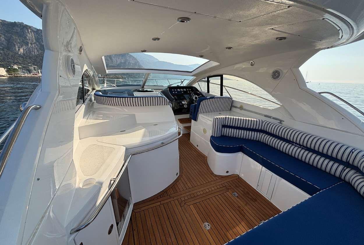 Electric hard top Never chartered Antifouling May 2025 Two cabins Two bathrooms Generator Kohler 6.5 KV with 500 hours Air conditioning Bow thruster GPS / Auto-pilot / VHF Flaps 2 Fridges Hydraulic passerelle Hydraulic swimming platform Two big sunbeds IPS Joystick New upholstery