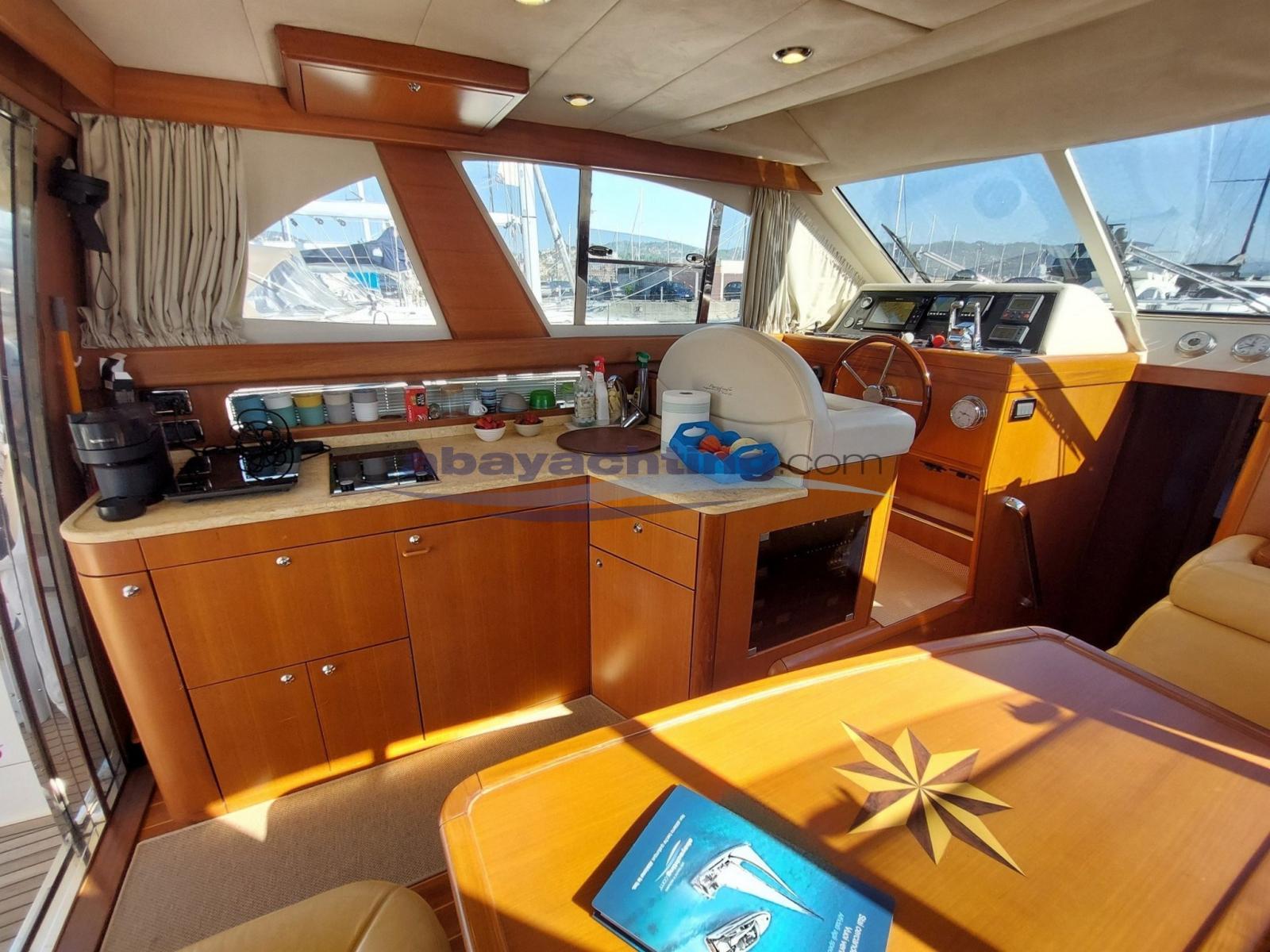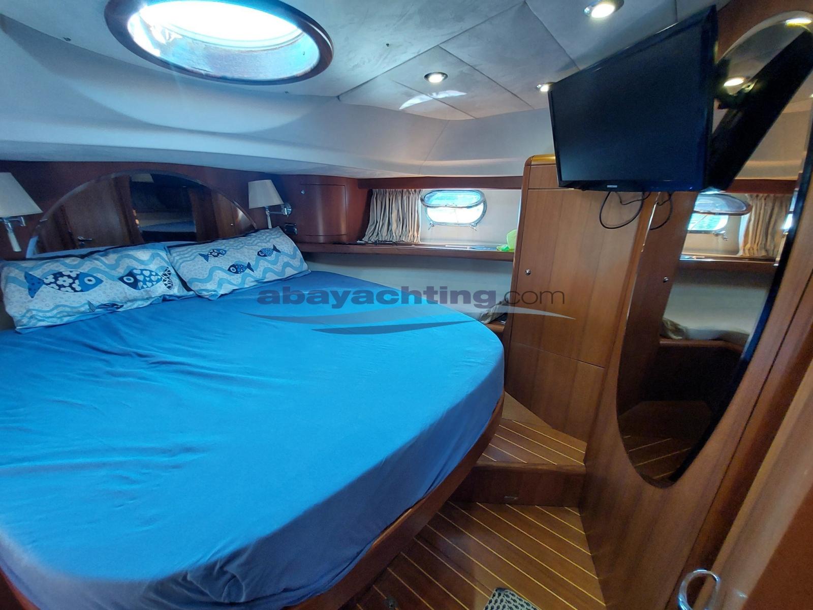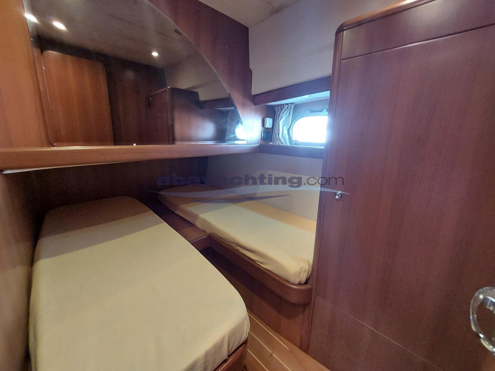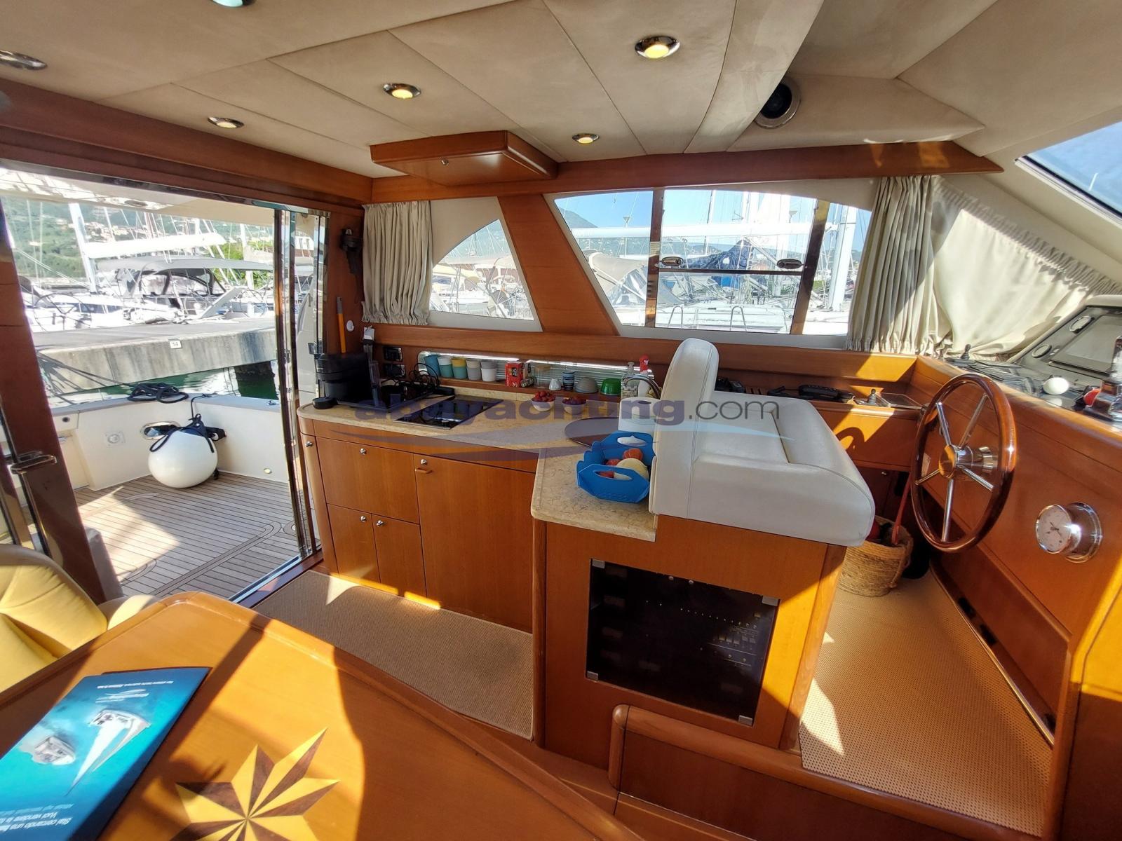 480hp Cummins in-line shaft motorisation. Fully equipped: stern thruster, bow thruster, 220v generator, reversible air conditioning in all rooms, Besenzoni electro-hydraulic gangway, bow winch, bimini on the flybridge and complete electronics with internal radar and flybridge radar.