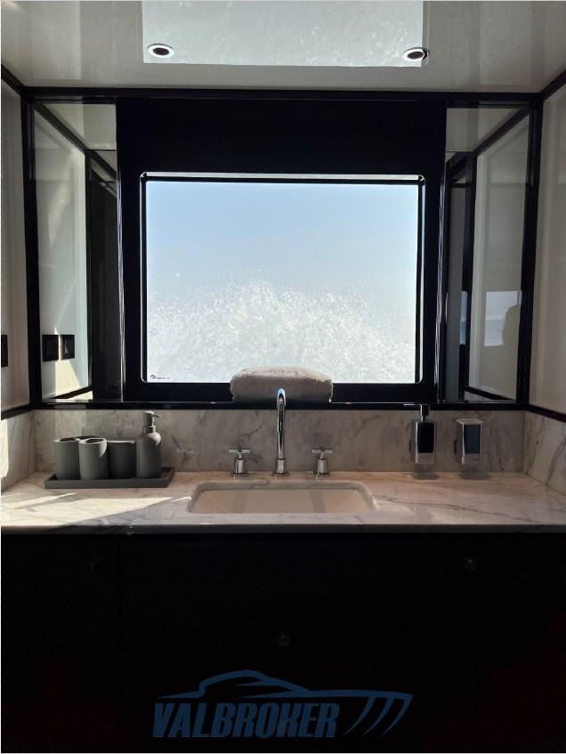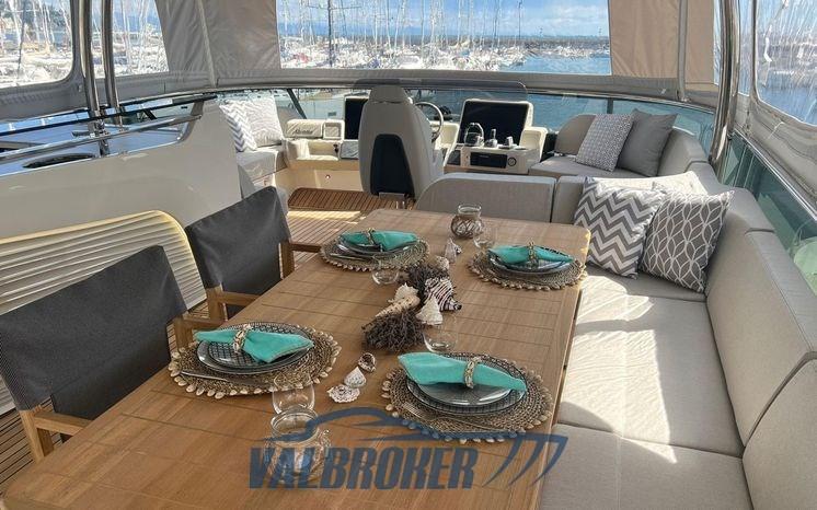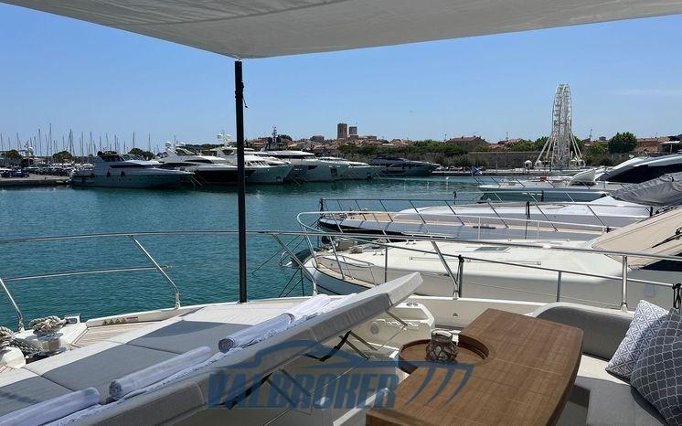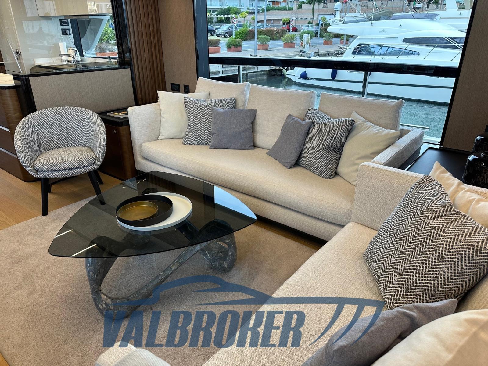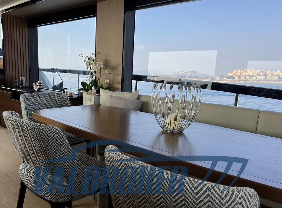 Sofa and bow sundeck shade with carbon poles, complete cover kit, teak bow table with electric leg, cover and backrest for sundeck, fly closing sheets, stern shade awning with carbon poles, Shore cable reels, gray water tank, electric blinds, Luxury interiors